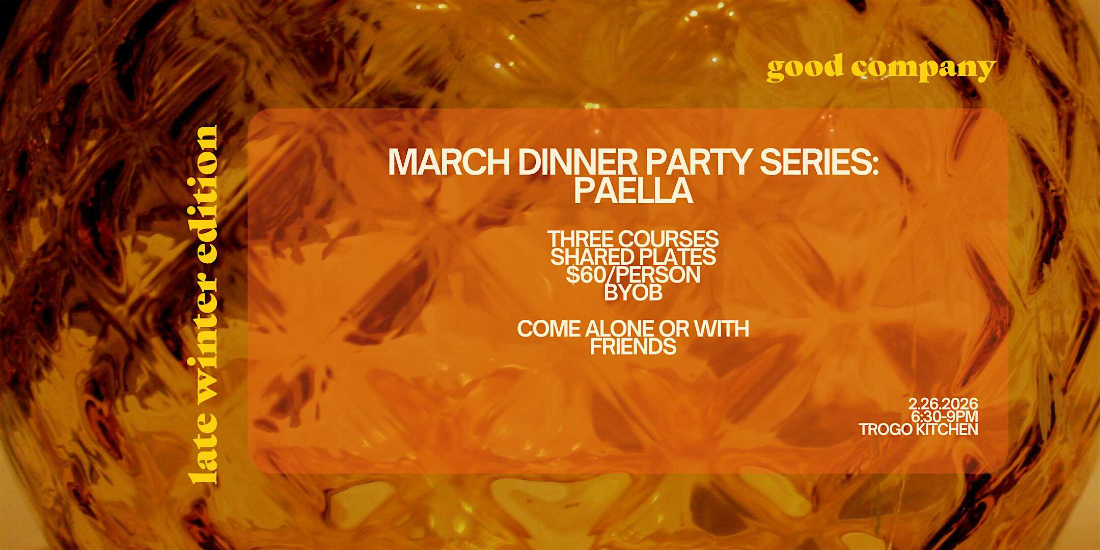 by admin14Feb Late Winter Dinner Party Series: Paella at Trogo Kitchen and Market – Chicago, IL Late Winter Dinner Party Series: Paella at Trogo Kitchen and Market – Chicago, IL 3 3 people viewed this event. Join us for a three course communal-style dinner centered around paella! Tickets-RSVP Link Date And Time Friday, February 27th, 2026 12:00 AM (PST) Venue Trogo Kitchen and Market Location 2545 West Diversey Avenue, Chicago, IL 60647 Event Types Food & Drink Event Category ChicagoIllinois Share With Friends Facebook Twitter Linkedin Xing Pinterest Share This Post: