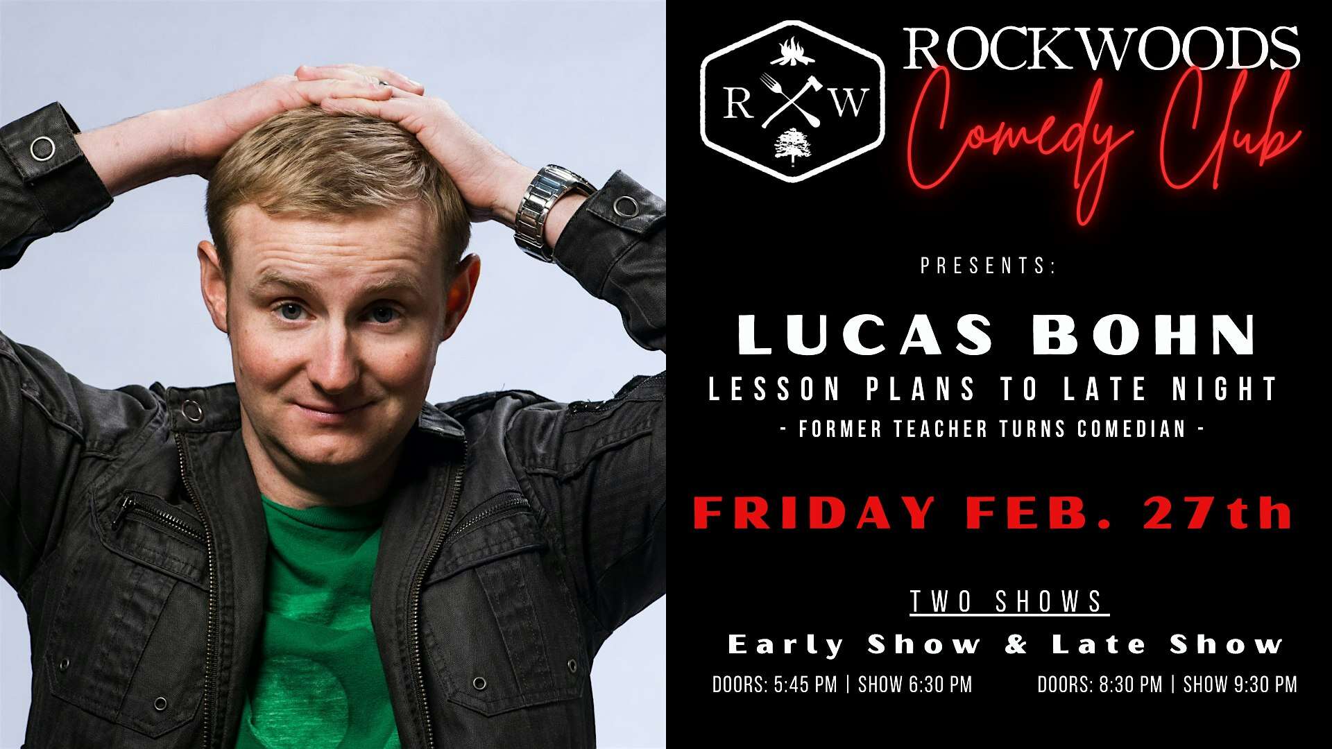 by admin14Feb Lucas Bohn – Lesson Plans to Late Night at Rockwoods – Otsego, MN Lucas Bohn – Lesson Plans to Late Night at Rockwoods – Otsego, MN 2 2 people viewed this event. Former teacher turned viral comedian Lucas Bohn brings high-energy, classroom-fueled stand-up. Early and late show tickets are available. Tickets-RSVP Link Date And Time Friday, February 27th, 2026 11:00 PM (PST) Venue Rockwoods Location 9100 Quaday Avenue Northeast, Otsego, MN 55330 Event Types Concert or PerformancePerforming & Visual Arts Event Category Minnesota Share With Friends Facebook Twitter Linkedin Xing Pinterest Share This Post: