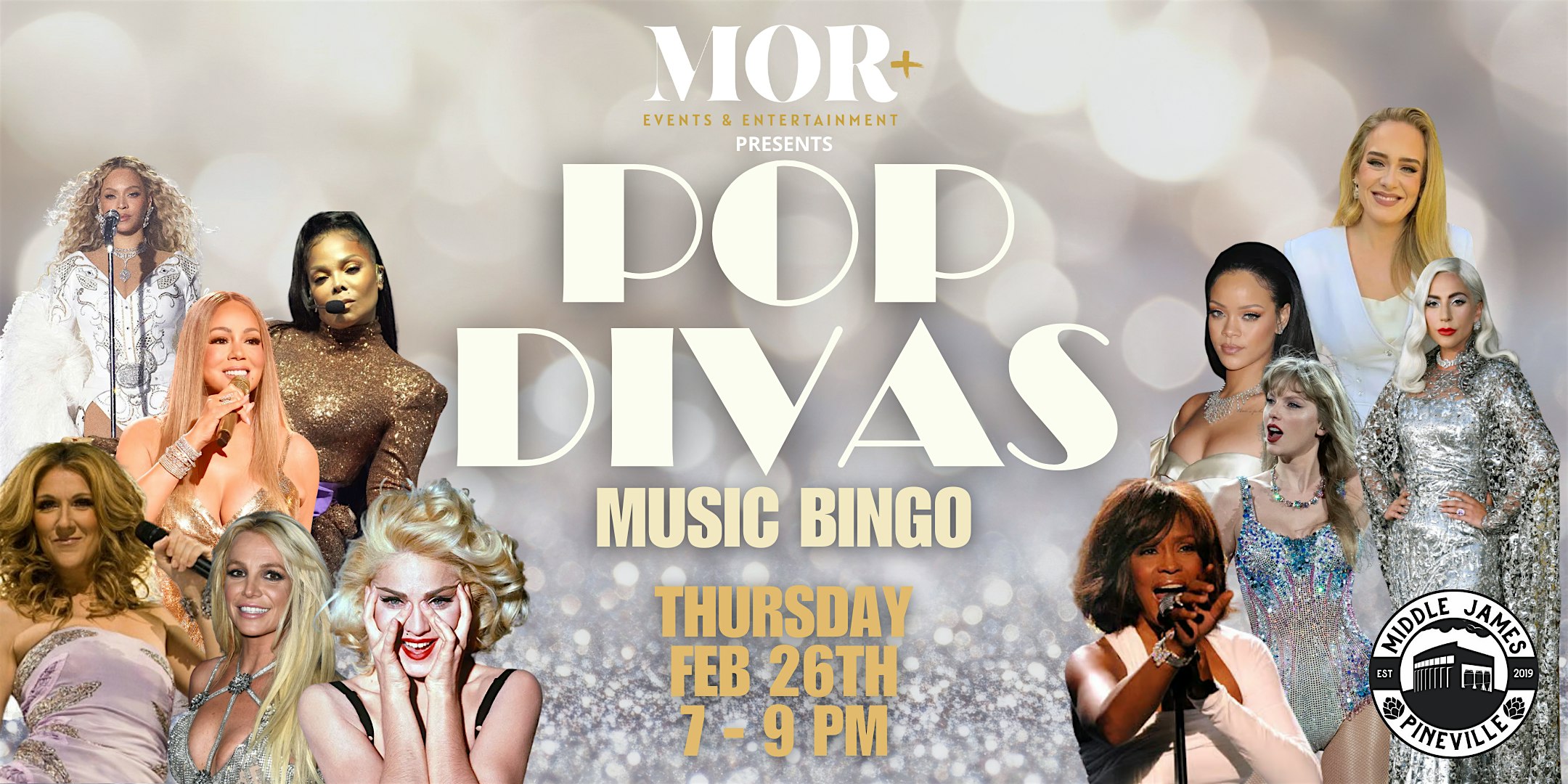 by admin13Feb Pop Divas Music Bingo @ Middle James Brewing Pineville at Middle James Brewing Company – Pineville, NC Pop Divas Music Bingo @ Middle James Brewing Pineville at Middle James Brewing Company – Pineville, NC 1 1 people viewed this event. Pop Divas music bingo – celebrating big vocals, bold styles, unforgettable choruses! Tickets-RSVP Link Date And Time Friday, February 27th, 2026 12:00 AM (PST) Venue Middle James Brewing Company Location 400 North Polk Street, Pineville, NC 28134 Event Types Music Event Category North Carolina Share With Friends Facebook Twitter Linkedin Xing Pinterest Share This Post:
