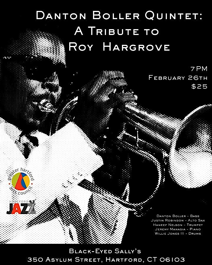 by admin13Feb Roy Hargrove Tribute Concert Featuring The Don Boller Quintet at Black-Eyed Sally’s Southern Kitchen & Bar – Hartford, CT Roy Hargrove Tribute Concert Featuring The Don Boller Quintet at Black-Eyed Sally’s Southern Kitchen & Bar – Hartford, CT 2 2 people viewed this event. In Partnership with the Greater Hartford Arts Council Winter Jazz Activation Hartford Jazz Society Fundraiser Event Tickets-RSVP Link Date And Time Friday, February 27th, 2026 12:00 AM (PST) Venue Black-Eyed Sally's Southern Kitchen & Bar Location 350 Asylum Street, Hartford, CT 6103 Event Types Concert or PerformanceMusic Event Category ConnecticutHartford Share With Friends Facebook Twitter Linkedin Xing Pinterest Share This Post: