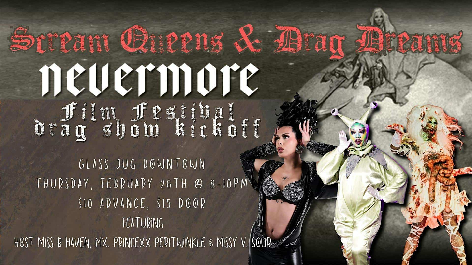 by admin14Feb Scream Queens & Drag Dreams: Nevermore Film Festival Drag Show Kickoff at The Glass Jug Beer Lab – Downtown Durham – Durham, NC Scream Queens & Drag Dreams: Nevermore Film Festival Drag Show Kickoff at The Glass Jug Beer Lab – Downtown Durham – Durham, NC 1 1 people viewed this event. Come experience a night of drag that’s devilish in all the right ways as we kick off the Nevermore Film Festival! Tickets-RSVP Link Date And Time Friday, February 27th, 2026 01:00 AM (PST) Venue The Glass Jug Beer Lab - Downtown Durham Location 545 Foster Street, Durham, NC 27701 Event Types Concert or PerformancePerforming & Visual Arts Event Category DurhamNorth Carolina Share With Friends Facebook Twitter Linkedin Xing Pinterest Share This Post: