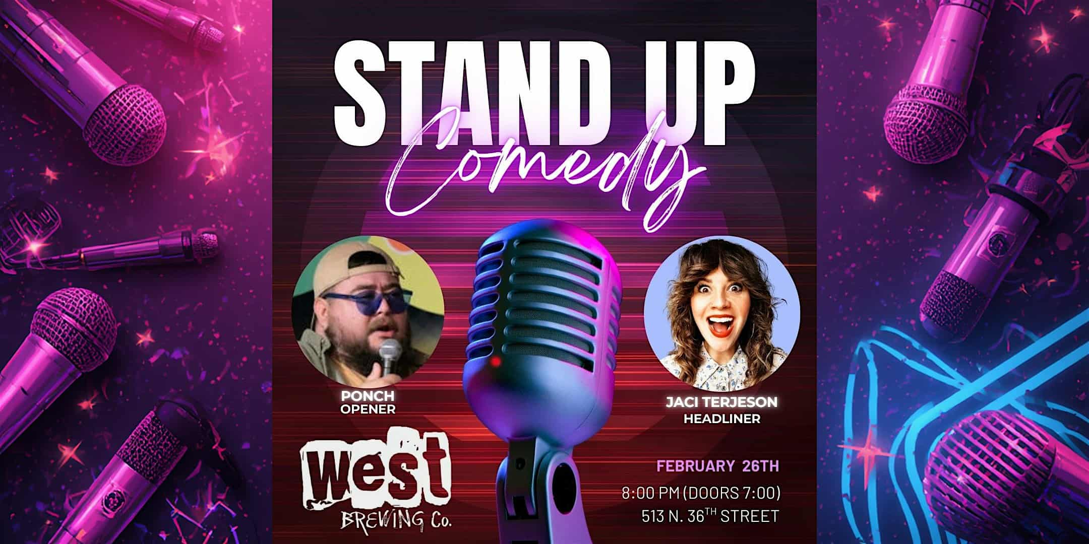 by admin14Feb Stand Up Comedy Night at West Brewing Co. — Featuring Jaci Terjeson at West Brew – Seattle, WA Stand Up Comedy Night at West Brewing Co. — Featuring Jaci Terjeson at West Brew – Seattle, WA 2 2 people viewed this event. Join us for a hilarious Stand Up Comedy Night at West Brewing Co. with the fabulous Jaci Terjeson – laughter guaranteed! Tickets-RSVP Link Date And Time Friday, February 27th, 2026 04:00 AM (PST) Venue West Brew Location 513 N 36th St, Seattle, WA 98103 Event Types Concert or PerformancePerforming & Visual Arts Event Category SeattleWashington Share With Friends Facebook Twitter Linkedin Xing Pinterest Share This Post: