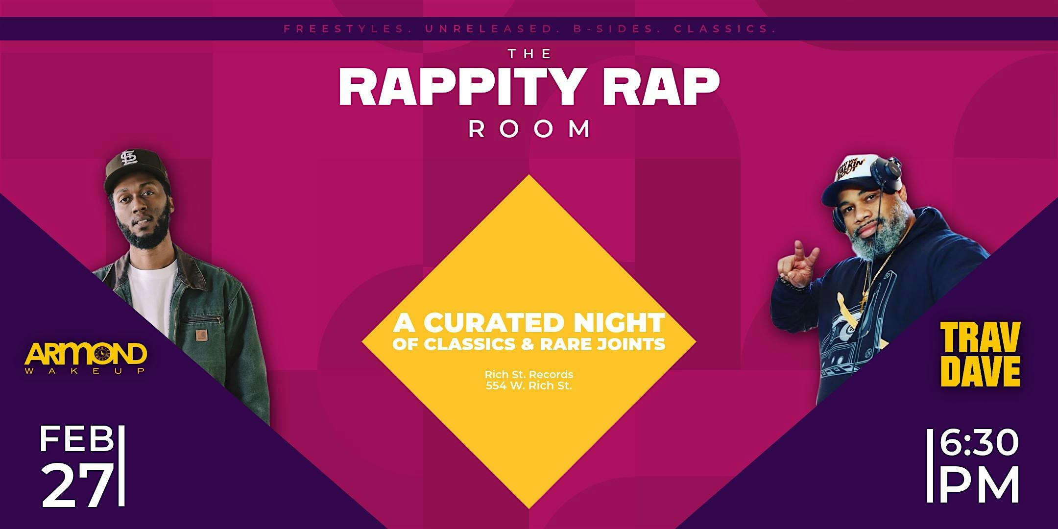 by admin13Feb The Rappity Rap Room at Rich St. Records fka Roots – Columbus, OH The Rappity Rap Room at Rich St. Records fka Roots – Columbus, OH 2 2 people viewed this event. Mixtape classics, unreleased gems from the underground & B-sides curated by Trav Dave & Armond WakeUp. Every month at Rich Street Records. Tickets-RSVP Link Date And Time Friday, February 27th, 2026 11:00 PM (PST) Venue Rich St. Records fka Roots Location 554 West Rich Street, Columbus, OH 43215 Event Types MusicParty or Social Gathering Event Category Ohio Share With Friends Facebook Twitter Linkedin Xing Pinterest Share This Post: