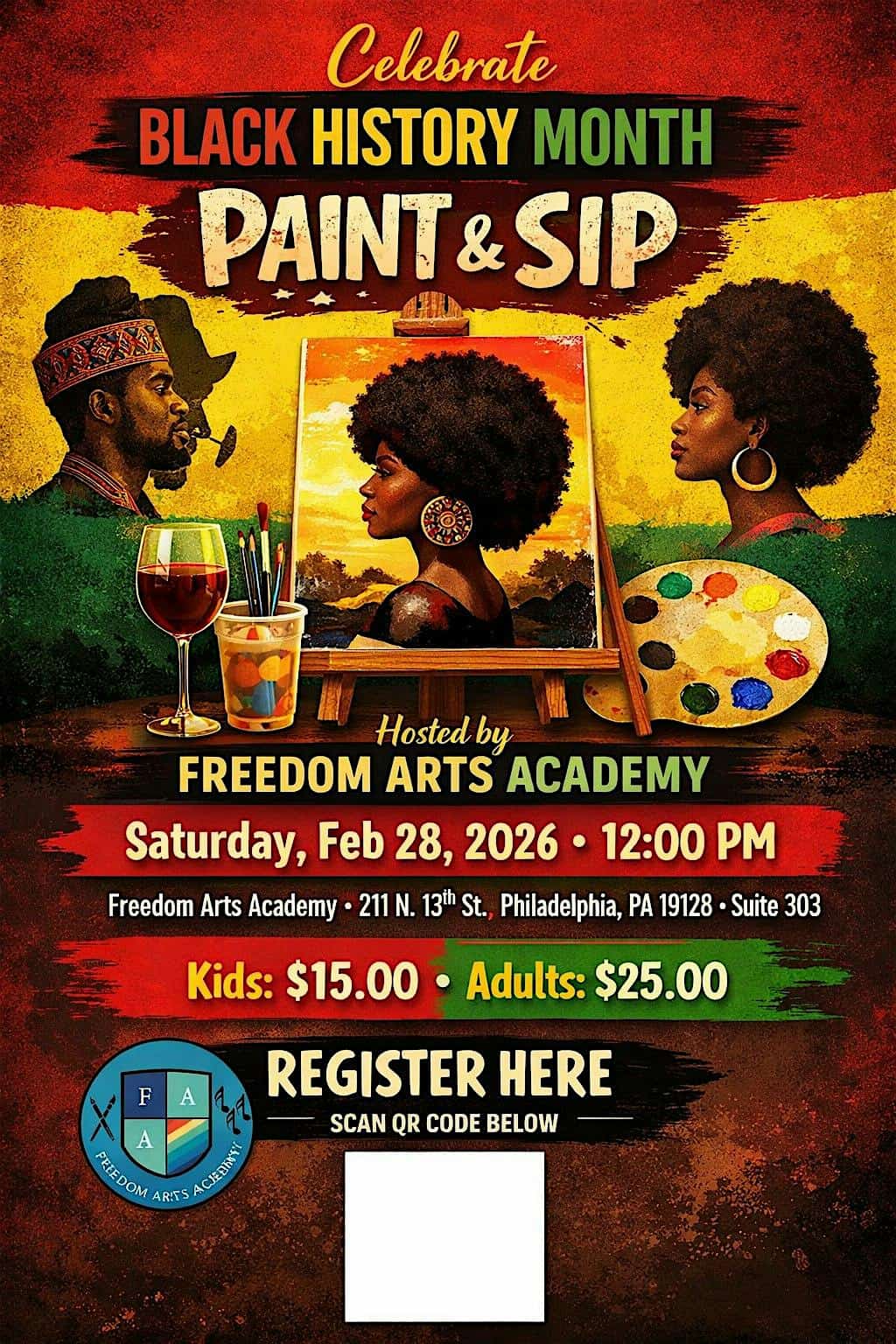 by admin14Feb Black History Month Paint & Sip at 211 N 13th St – Philadelphia, PA Black History Month Paint & Sip at 211 N 13th St – Philadelphia, PA 1 1 people viewed this event. Join Freedom Arts Academy for a special Black History Month Paint & Sip designed for children, families, and adults of all skill levels. Tickets-RSVP Link Date And Time Saturday, February 28th, 2026 05:00 PM (PST) Venue 211 N 13th St Location 211 North 13th Street, Philadelphia, PA 19107 Event Types Community & CultureParty or Social Gathering Event Category PennsylvaniaPhiladelphia Share With Friends Facebook Twitter Linkedin Xing Pinterest Share This Post: