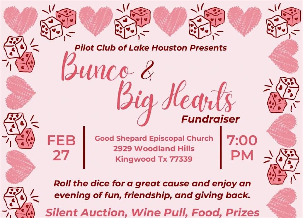 by admin14Feb Bunco & Big Hearts Fundraiser at Good Shepherd Episcopal Church – Houston, TX Bunco & Big Hearts Fundraiser at Good Shepherd Episcopal Church – Houston, TX 1 1 people viewed this event. Roll the dice and warm your heart- fun for a great cause! Pilot International is a 501(c)(3) focusing on brain safety and health! Tickets-RSVP Link Date And Time Saturday, February 28th, 2026 01:00 AM (PST) Venue Good Shepherd Episcopal Church Location 2929 Woodland Hills Drive, Houston, TX 77339 Event Types Charity & CausesParty or Social Gathering Event Category HoustonTexas Share With Friends Facebook Twitter Linkedin Xing Pinterest Share This Post: