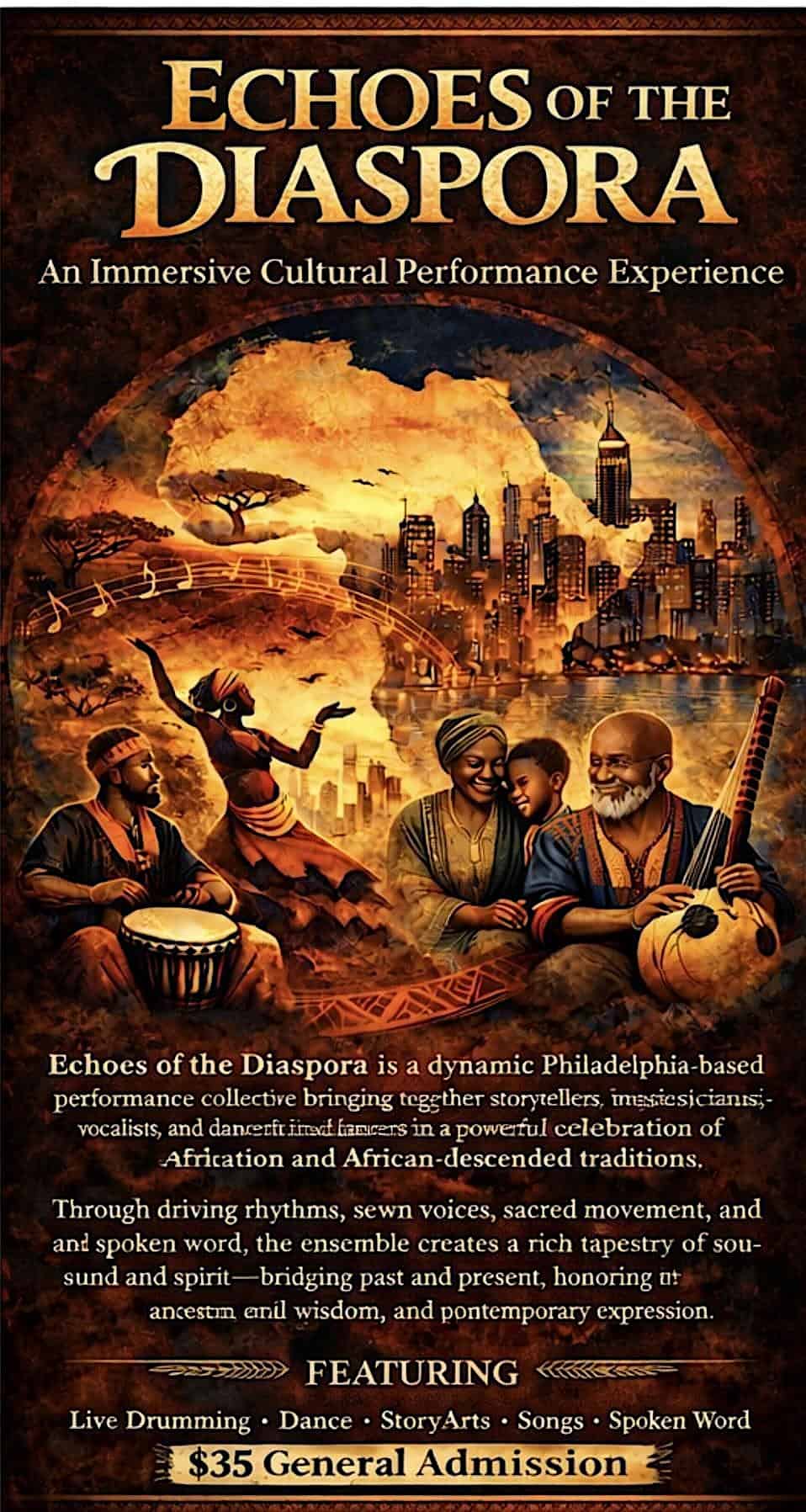 by admin14Feb Echoes of the Diaspora at 1340-48 S 13th St – Philadelphia, PA Echoes of the Diaspora at 1340-48 S 13th St – Philadelphia, PA 2 2 people viewed this event. Join us for a celebration of culture and heritage at Echoes of the Diaspora, where stories come to life through narration, story and music. Tickets-RSVP Link Date And Time Saturday, February 28th, 2026 08:00 PM (PST) Venue 1340-48 S 13th St Location 1340-48 South 13th Street, Philadelphia, PA 19147 Event Types Community & CultureConcert or Performance Event Category PennsylvaniaPhiladelphia Share With Friends Facebook Twitter Linkedin Xing Pinterest Share This Post:
