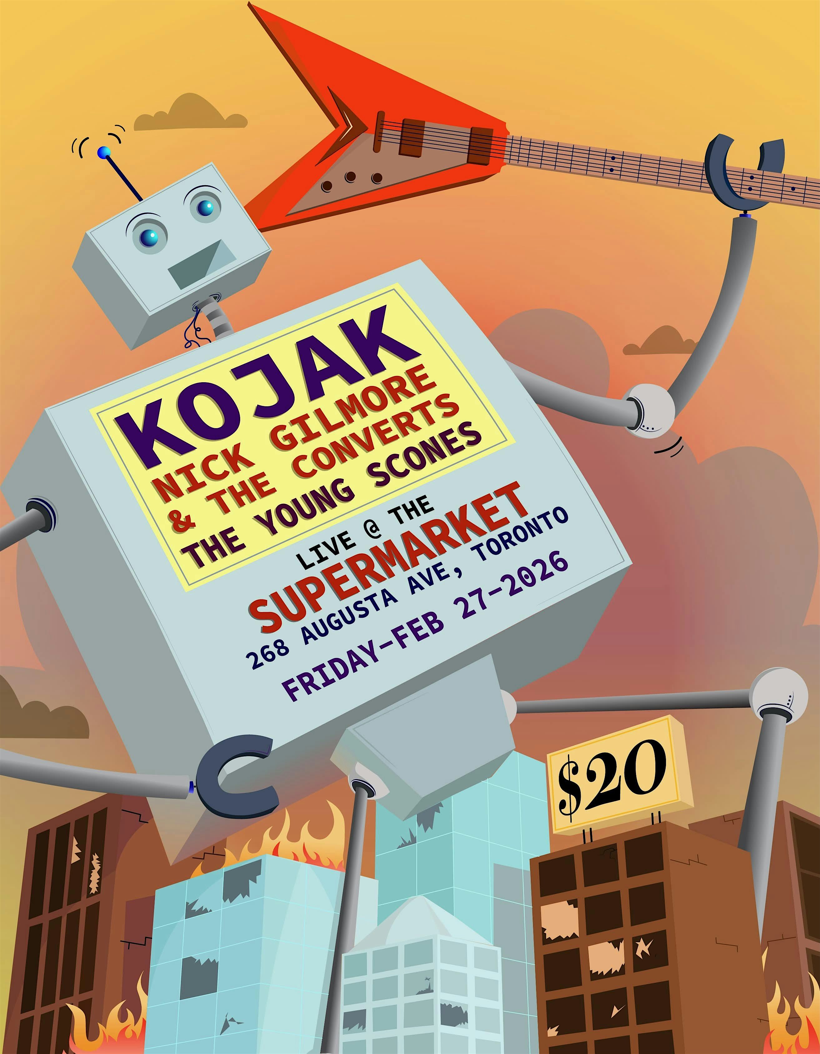 by admin13Feb KOJAK Live at Supermarket at Supermarket Bar and Variety – Toronto, Canada KOJAK Live at Supermarket at Supermarket Bar and Variety – Toronto, Canada 4 4 people viewed this event. Get ready to groove all night with KOJAK at Supermarket – Joined by The Young Scones and Nick Gilmore & The Converts Tickets-RSVP Link Date And Time Saturday, February 28th, 2026 01:00 AM (PST) Venue Supermarket Bar and Variety Location 268 Augusta Avenue, Toronto, Canada M5T 2L9 Event Types Concert or PerformanceMusic Event Category CanadaToronto Share With Friends Facebook Twitter Linkedin Xing Pinterest Share This Post: