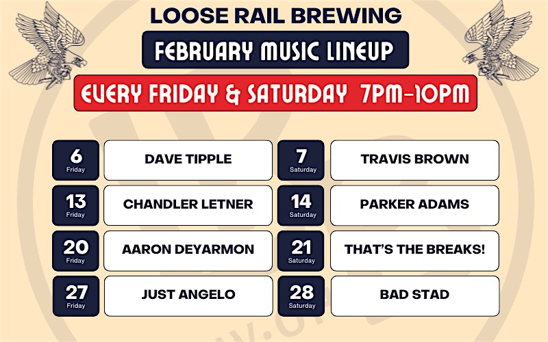 by admin13Feb Live Music: Just Angelo at Loose Rail Brewing ! at Loose Rail Brewing – Canal Winchester, OH Live Music: Just Angelo at Loose Rail Brewing ! at Loose Rail Brewing – Canal Winchester, OH 1 1 people viewed this event. Join us for an unforgettable evening of live music with Just Angelo at Loose Rail Brewing! Tickets-RSVP Link Date And Time Saturday, February 28th, 2026 12:00 AM (PST) Venue Loose Rail Brewing Location 37 West Waterloo Street, Canal Winchester, OH 43110 Event Types Concert or PerformanceMusic Event Category Ohio Share With Friends Facebook Twitter Linkedin Xing Pinterest Share This Post: