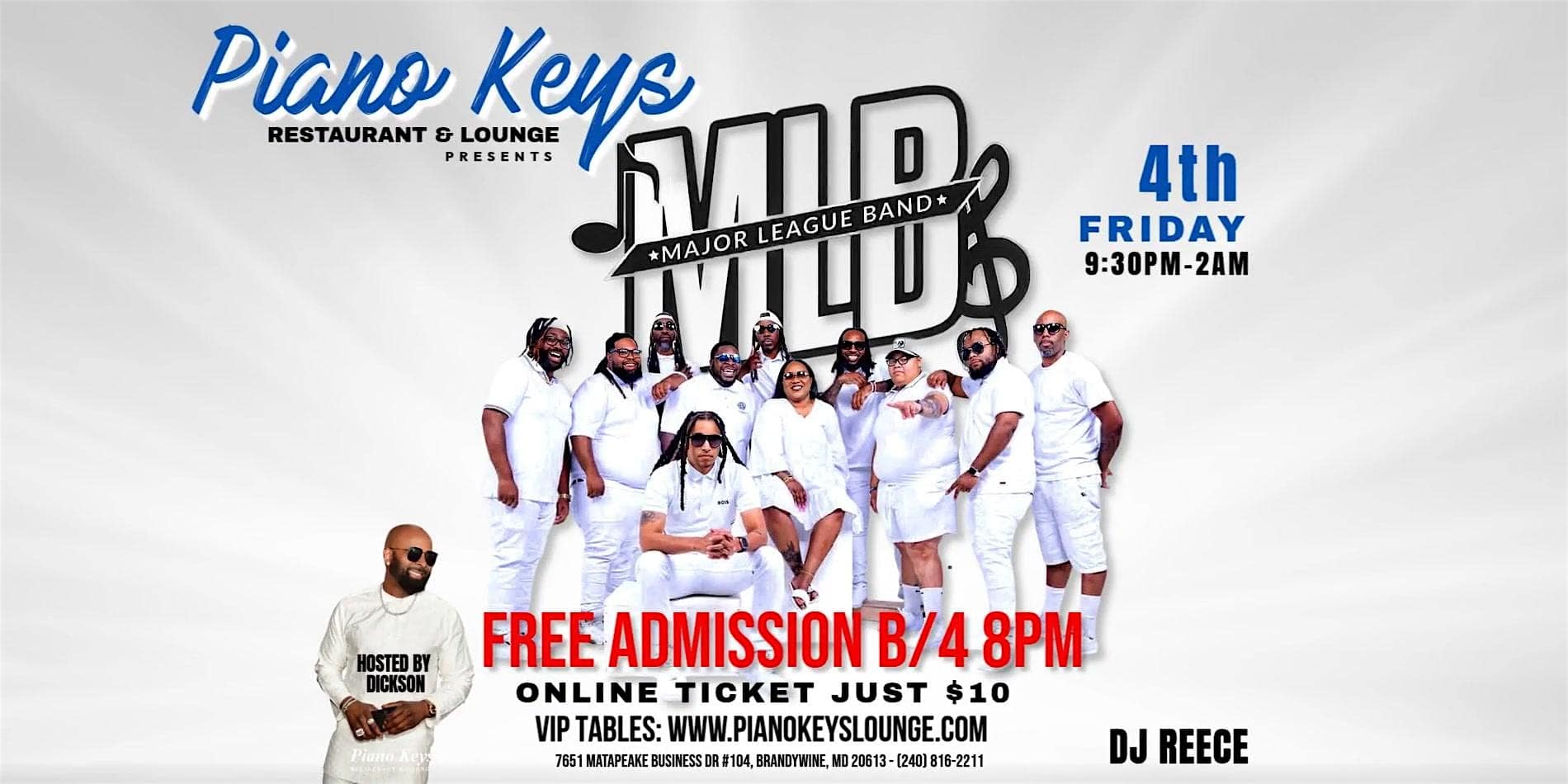 by admin14Feb Major League Band @ Piano Keys Lounge – 4th Friday at Piano Keys Restaurant and Lounge – Brandywine, MD Major League Band @ Piano Keys Lounge – 4th Friday at Piano Keys Restaurant and Lounge – Brandywine, MD 1 1 people viewed this event. 4th Friday – Piano Keys Restaurant & Lounge Friday just got better w/performance by Major League Band. Tickets-RSVP Link Date And Time Saturday, February 28th, 2026 02:00 AM (PST) Venue Piano Keys Restaurant and Lounge Location 7651 Matapeake Business Drive, Brandywine, MD 20613 Event Types Concert or PerformanceOther Event Category MarylandNational Harbor Share With Friends Facebook Twitter Linkedin Xing Pinterest Share This Post: