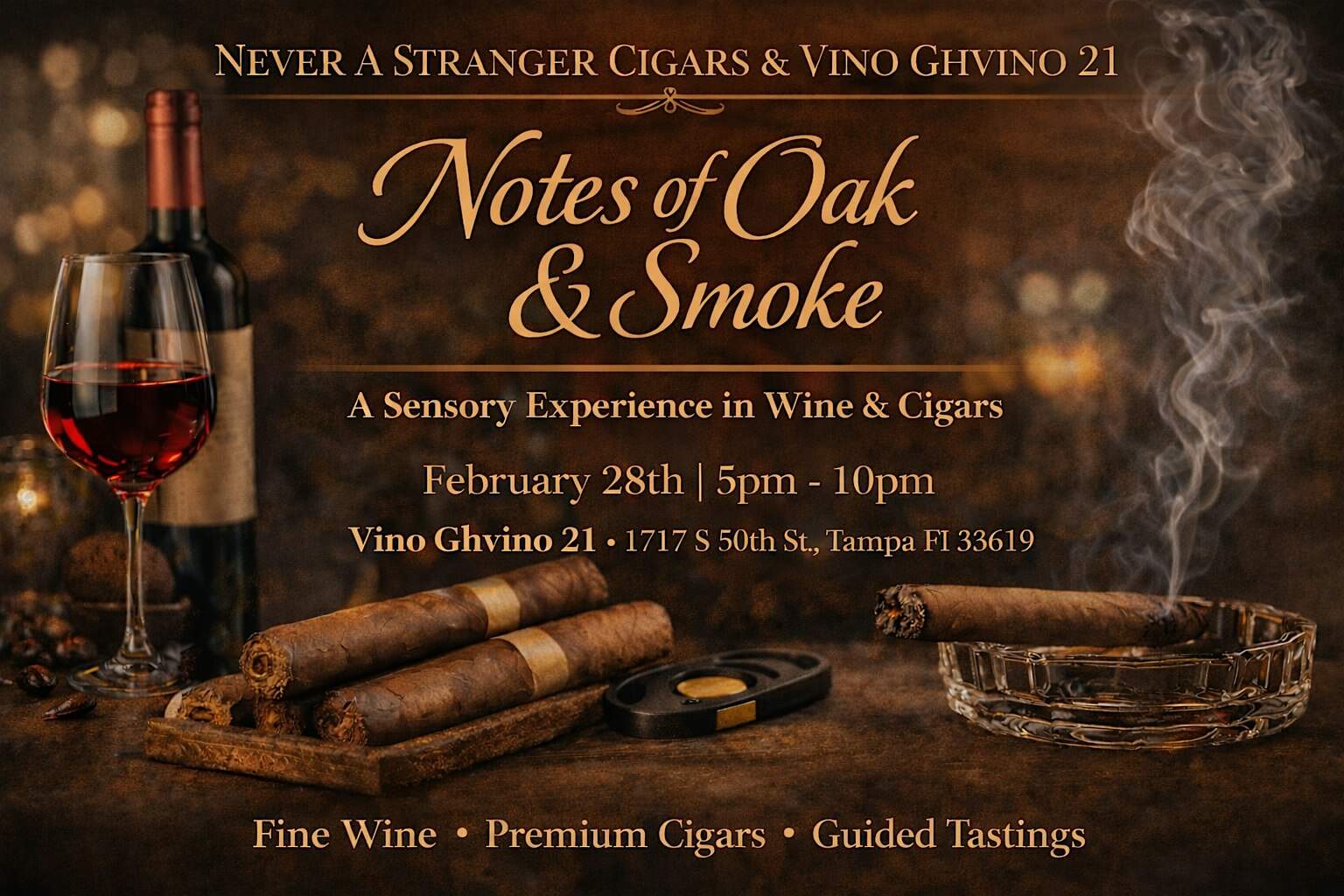 by admin14Feb Never A Stranger (NAS) Cigars & Vino Ghvino 21: Notes of Oak & Smoke at Vino Ghvino 21 – Tampa, FL Never A Stranger (NAS) Cigars & Vino Ghvino 21: Notes of Oak & Smoke at Vino Ghvino 21 – Tampa, FL 2 2 people viewed this event. An elevated evening of fine wine and premium cigars. Free general entry. Curated pairing packages and guided tastings available. Tickets-RSVP Link Date And Time Saturday, February 28th, 2026 10:00 PM (PST) Venue Vino Ghvino 21 Location 1717 South 50th Street, Tampa, FL 33619 Event Types OtherParty or Social Gathering Event Category FloridaTampa Share With Friends Facebook Twitter Linkedin Xing Pinterest Share This Post: