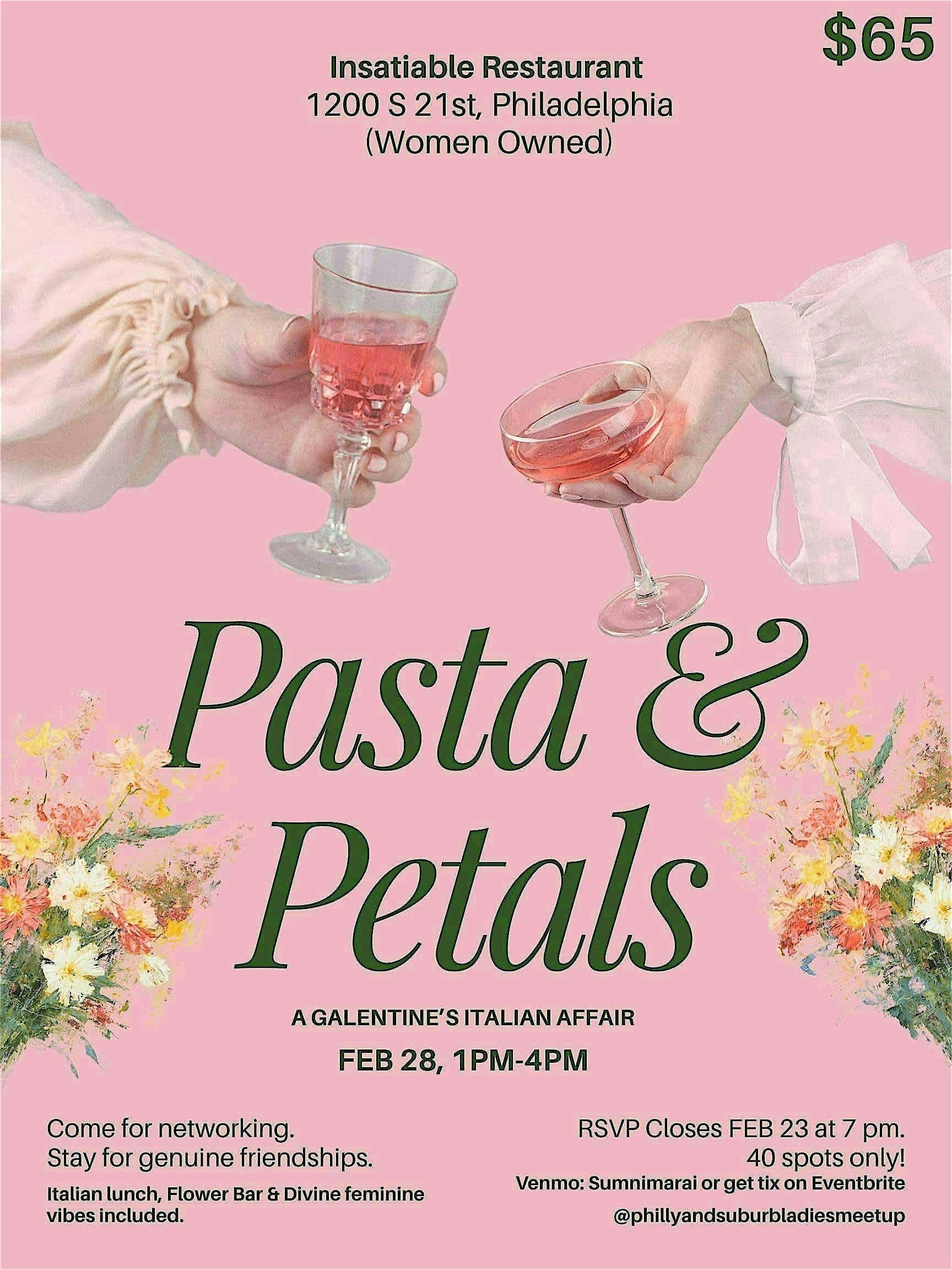 by admin14Feb Pasta & Petals Galentine’s Party (Women only) at Insatiable Restaurant – Philadelphia, PA Pasta & Petals Galentine’s Party (Women only) at Insatiable Restaurant – Philadelphia, PA 2 2 people viewed this event. Come alone or with friends to celebrate girlhood, meet like minded women, make new friends, expand your social circle in Philly. Tickets-RSVP Link Date And Time Saturday, February 28th, 2026 06:00 PM (PST) Venue Insatiable Restaurant Location 1200 South 21st Street, Philadelphia, PA 19146 Event Types Food & DrinkParty or Social Gathering Event Category PennsylvaniaPhiladelphia Share With Friends Facebook Twitter Linkedin Xing Pinterest Share This Post: