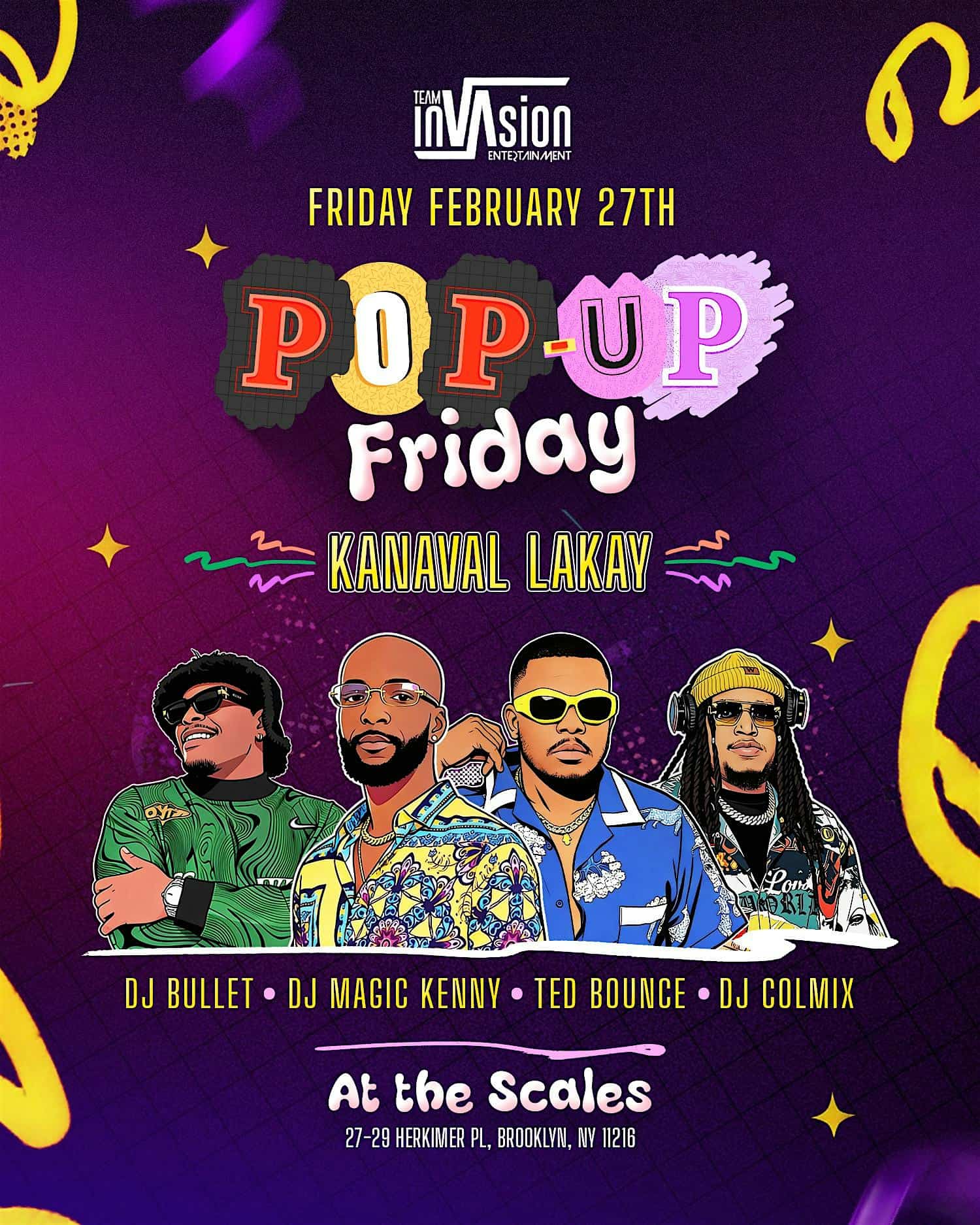 by admin14Feb Pop Up Friday ” Kanaval Lakay ” Edition! at SCALES – Brooklyn, NY Pop Up Friday ” Kanaval Lakay ” Edition! at SCALES – Brooklyn, NY 2 2 people viewed this event. Pop Up Friday ” Kanaval Lakay ” Edition : bring home’s heartbeat with familiar flavors, lively sounds, and carnival joy! Tickets-RSVP Link Date And Time Saturday, February 28th, 2026 03:00 AM (PST) Venue SCALES Location 27-29 Herkimer Place, Brooklyn, NY 11216 Event Types Community & CultureParty or Social Gathering Event Category New York Share With Friends Facebook Twitter Linkedin Xing Pinterest Share This Post: