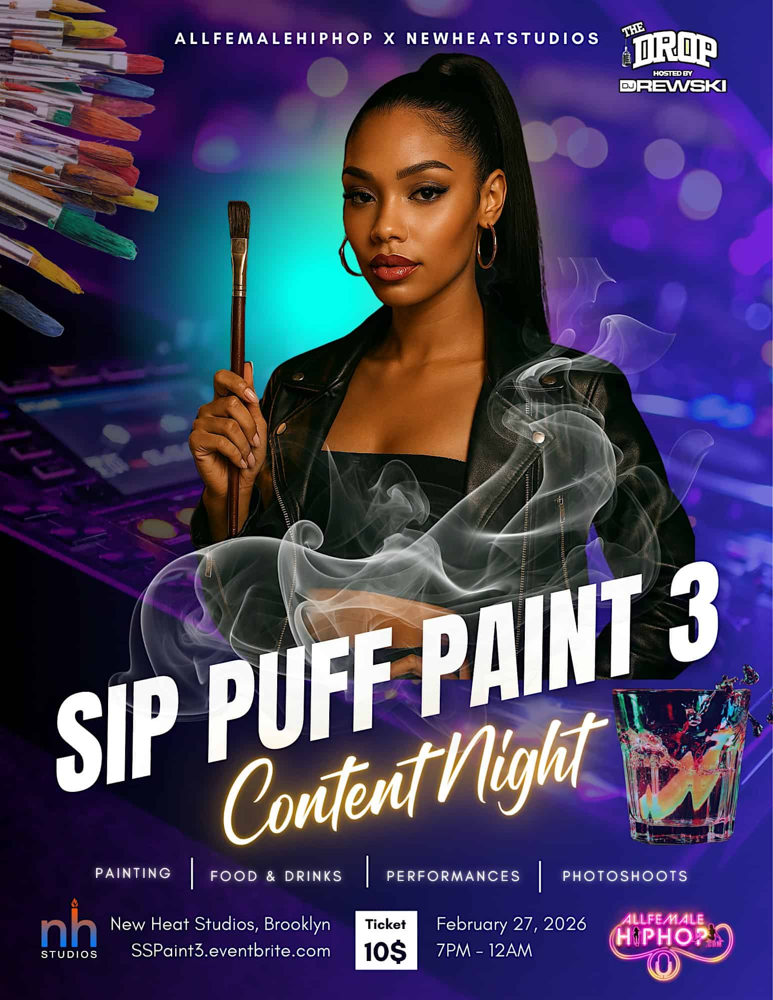 by admin14Feb Sip Puff Paint Content Night 3 at New Heat Studio – Brooklyn, NY Sip Puff Paint Content Night 3 at New Heat Studio – Brooklyn, NY 1 1 people viewed this event. Get ready to unleash your inner artist while sipping and puffing at our Paint Content Night – it’s going to be a blast! Tickets-RSVP Link Date And Time Saturday, February 28th, 2026 12:00 AM (PST) Venue New Heat Studio Location 2 Prince St., Ste 6003,, Brooklyn, NY 11201 Event Types Party or Social GatheringPerforming & Visual Arts Event Category New York Share With Friends Facebook Twitter Linkedin Xing Pinterest Share This Post: