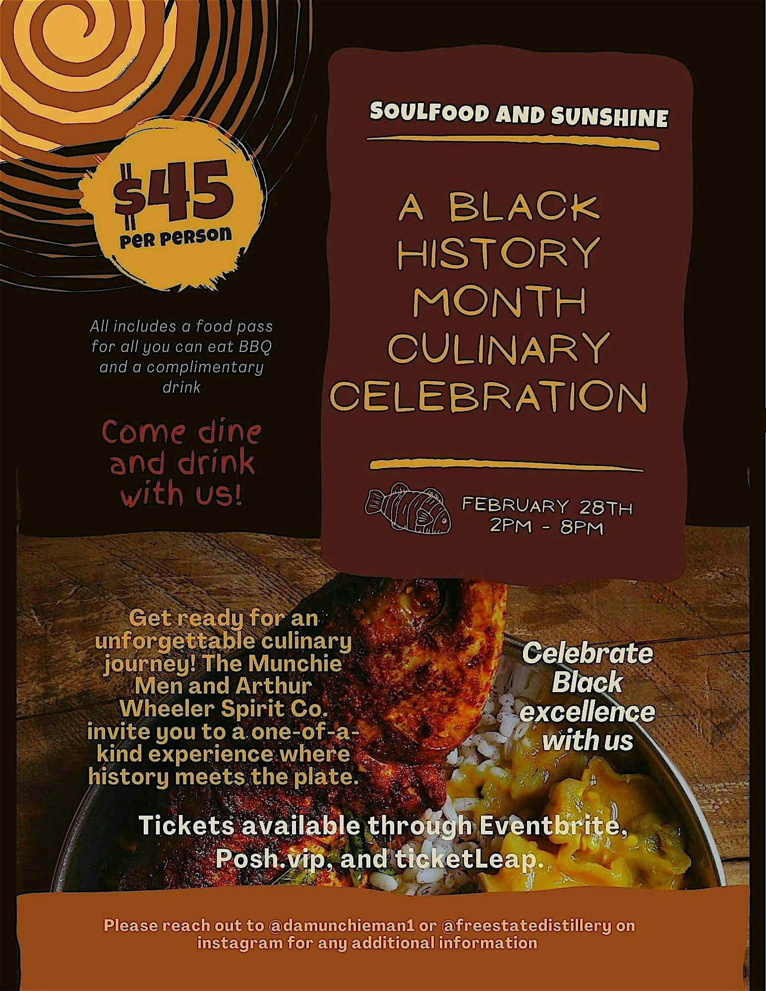 by admin14Feb Soul Food and Sunshine at The Free State Distillery, Inc – Upper Marlboro, MD Soul Food and Sunshine at The Free State Distillery, Inc – Upper Marlboro, MD 3 3 people viewed this event. Chill vibes, good eats, and sunny smiles—come soak up Soul Food and Sunshine with us IRL! Tickets-RSVP Link Date And Time Saturday, February 28th, 2026 07:00 PM (PST) Venue The Free State Distillery, Inc Location 1001 Prince Georges Boulevard, Upper Marlboro, MD 20774 Event Types Festival or FairFood & Drink Event Category MarylandNational Harbor Share With Friends Facebook Twitter Linkedin Xing Pinterest Share This Post: