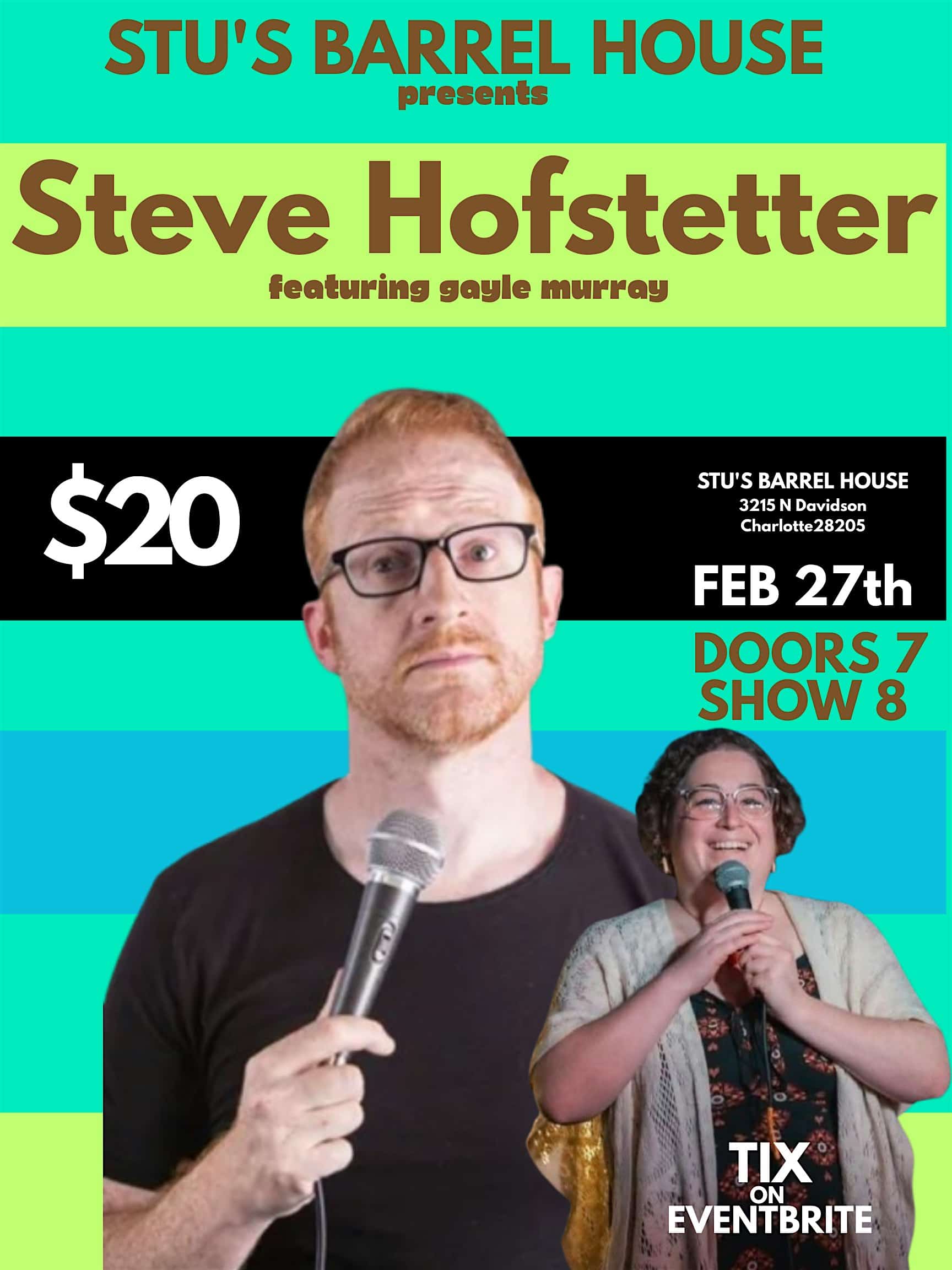 by admin14Feb Stu’s Barrel House presents Steve Hofstetter at Stu’s Barrel House – Charlotte, NC Stu’s Barrel House presents Steve Hofstetter at Stu’s Barrel House – Charlotte, NC 2 2 people viewed this event. With over a billion views online, Steve Hofstetter has proven to be one of the great standups of our time. Join us for a drink and laughs! Tickets-RSVP Link Date And Time Saturday, February 28th, 2026 12:00 AM (PST) Venue Stu's Barrel House Location 3215 North Davidson Street, Charlotte, NC 28205 Event Types Concert or PerformancePerforming & Visual Arts Event Category CharlotteNorth Carolina Share With Friends Facebook Twitter Linkedin Xing Pinterest Share This Post: