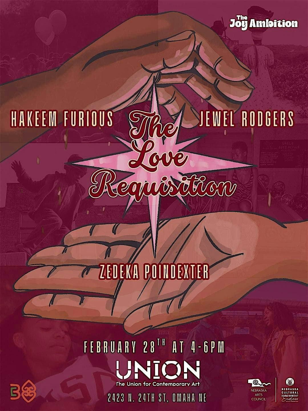 by admin14Feb The Love Requisition at The Union For Contemporary Art – Omaha, NE The Love Requisition at The Union For Contemporary Art – Omaha, NE 2 2 people viewed this event. A special afternoon of poets performing new work and collaborative workshop honoring 100 years of Black History Month. Tickets-RSVP Link Date And Time Saturday, February 28th, 2026 10:00 PM (PST) Venue The Union For Contemporary Art Location 2423 North 24th Street, Omaha, NE 68110 Event Types Community & CultureConcert or Performance Event Category NebraskaOmaha Share With Friends Facebook Twitter Linkedin Xing Pinterest Share This Post: