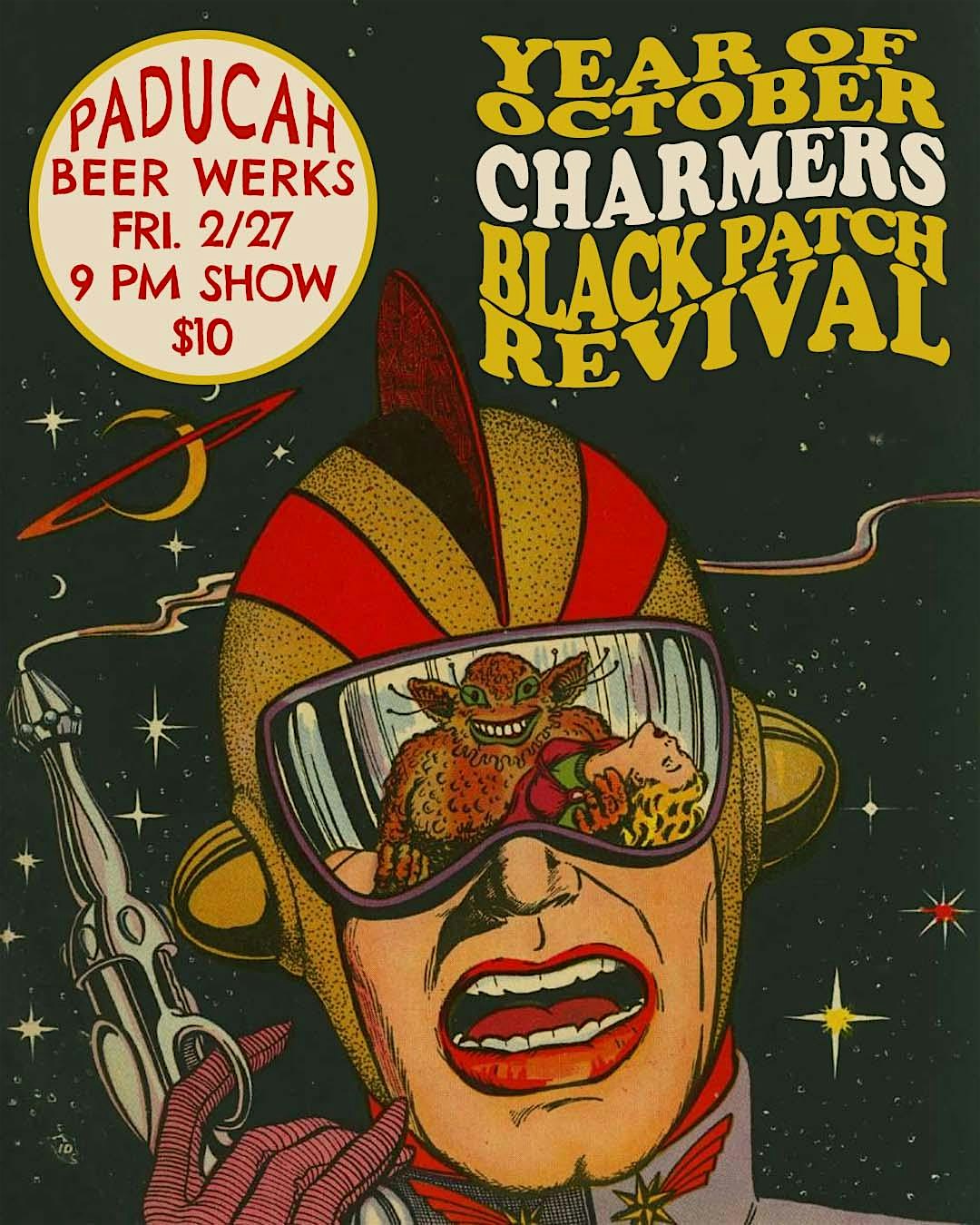 by admin13Feb Year of October, Charmers and Black Patch Revival at PBW at Paducah Beer Werks – Paducah, KY Year of October, Charmers and Black Patch Revival at PBW at Paducah Beer Werks – Paducah, KY 2 2 people viewed this event. Get ready to vibe with Year of October, Charmers, and Black Patch Revival live at PBW – an epic night awaits! Tickets-RSVP Link Date And Time Saturday, February 28th, 2026 03:00 AM (PST) Venue Paducah Beer Werks Location 301 North 4th Street, Paducah, KY 42001 Event Types Concert or PerformanceMusic Event Category Kentucky Share With Friends Facebook Twitter Linkedin Xing Pinterest Share This Post: