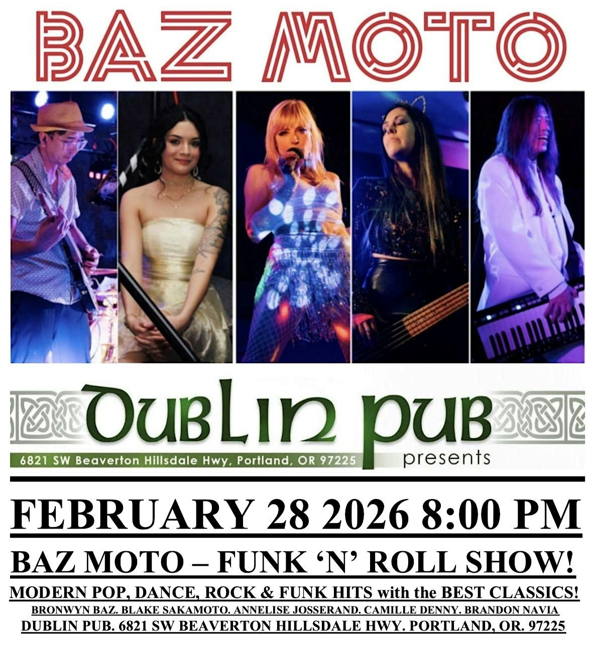 by admin13Feb BAZ MOTO FUNK ‘N’ ROLL SHOW DUBLIN PUB FEBRUARY 28 2026 8:00 PM at Dublin Pub – Portland, OR BAZ MOTO FUNK ‘N’ ROLL SHOW DUBLIN PUB FEBRUARY 28 2026 8:00 PM at Dublin Pub – Portland, OR 3 3 people viewed this event. Get ready to rock at Baz Moto Funk ‘N’ Roll Show in Dublin Pub, Feb 28 at 8 PM – vibes on fire! Tickets-RSVP Link Date And Time Sunday, March 1st, 2026 04:00 AM (PST) Venue Dublin Pub Location 6821 Southwest Beaverton Hillsdale Highway, Portland, OR 97225 Event Types Concert or PerformanceMusic Event Category OregonPortland Share With Friends Facebook Twitter Linkedin Xing Pinterest Share This Post: