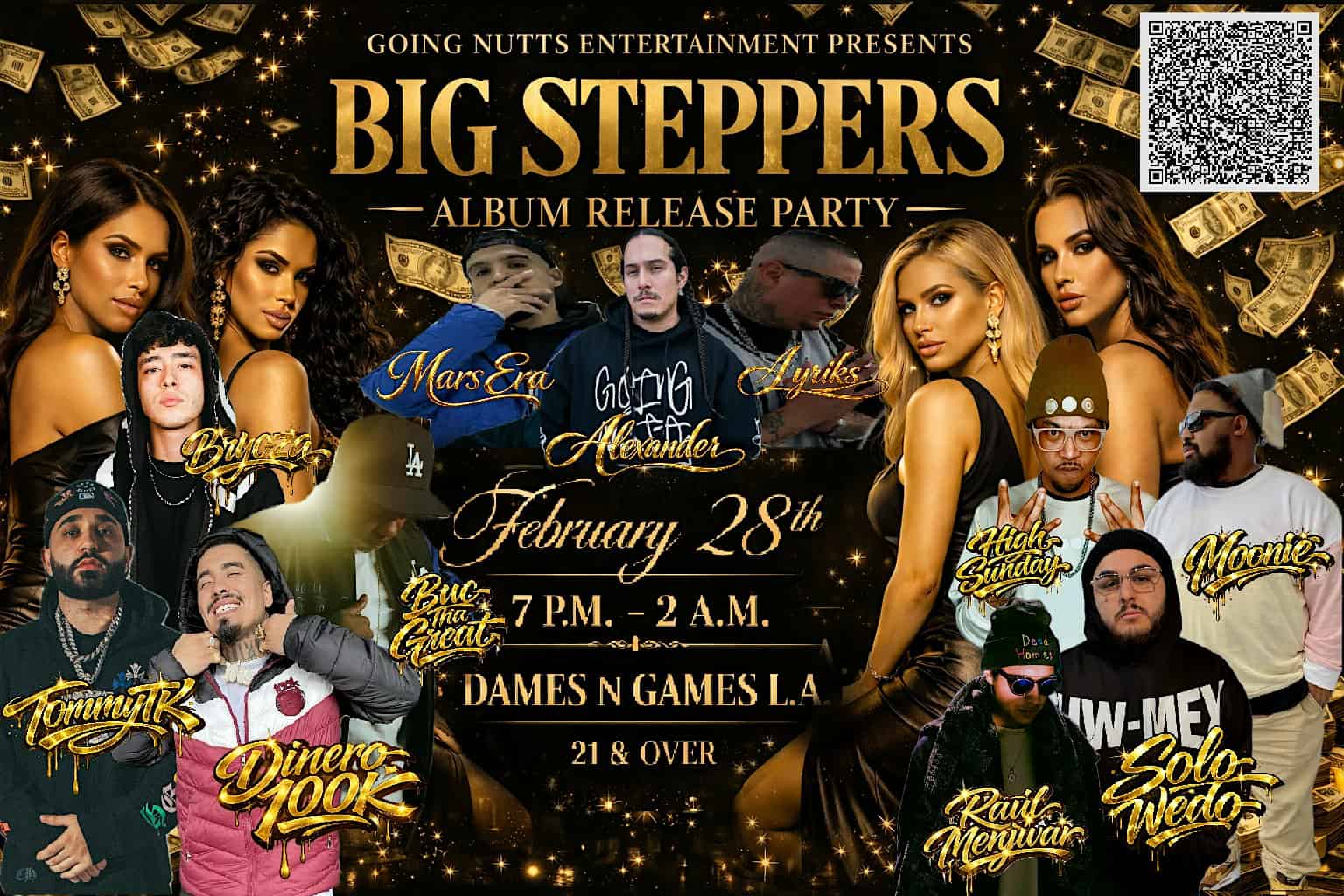 by admin14Feb Big Steppers Album Release Party at Dames N’ Games Topless Sports Bar Los Angeles – Los Angeles, CA Big Steppers Album Release Party at Dames N’ Games Topless Sports Bar Los Angeles – Los Angeles, CA 2 2 people viewed this event. Get ready to vibe and celebrate the Big Steppers Album Release with us live and loud! Tickets-RSVP Link Date And Time Sunday, March 1st, 2026 03:00 AM (PST) Venue Dames N' Games Topless Sports Bar Los Angeles Location 2319 East Washington Boulevard, Los Angeles, CA 90021 Event Types MusicParty or Social Gathering Event Category CaliforniaLos Angeles Share With Friends Facebook Twitter Linkedin Xing Pinterest Share This Post: