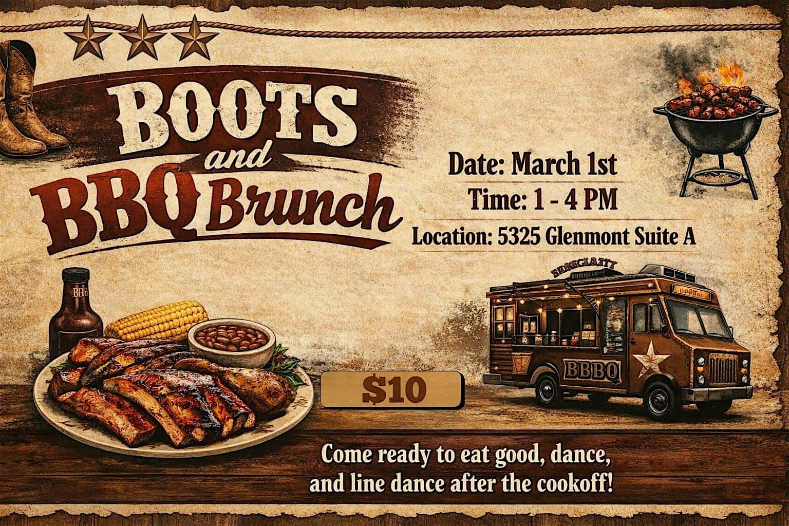 by admin14Feb Boots & BBQ at Nova by Fenixx – Houston, TX Boots & BBQ at Nova by Fenixx – Houston, TX 2 2 people viewed this event. Get ready to kick up some dust and savor delicious BBQ bites at Boots & BBQ, where the good times and flavors never stop! Tickets-RSVP Link Date And Time Sunday, March 1st, 2026 07:00 PM (PST) Venue Nova by Fenixx Location 5325 Glenmont Drive, Houston, TX 77081 Event Types Food & DrinkParty or Social Gathering Event Category HoustonTexas Share With Friends Facebook Twitter Linkedin Xing Pinterest Share This Post: