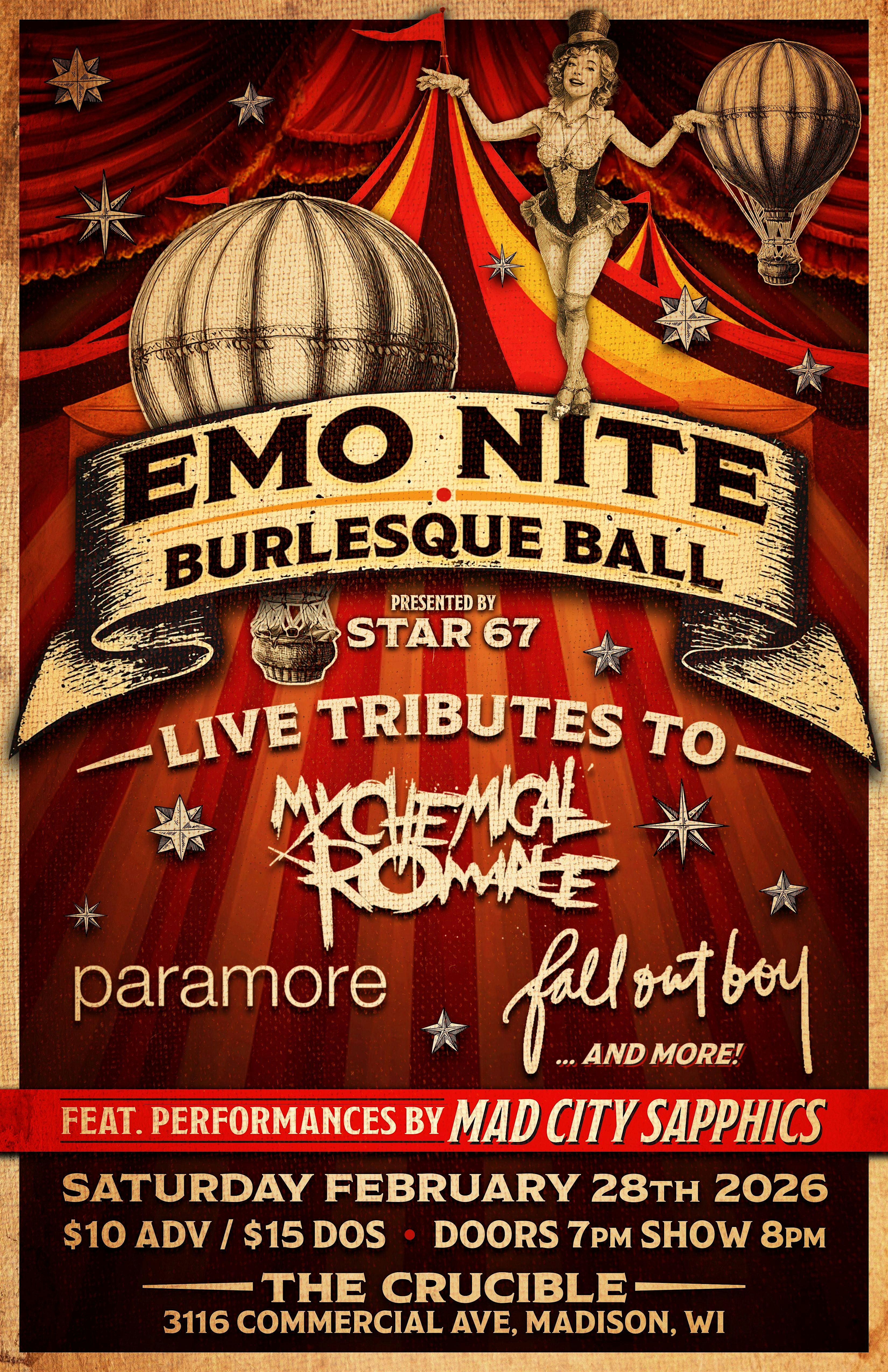 Emo Nite LIVE! Burlesque Ball Edition at Crucible, Commercial Avenue, Madison, WI, USA – Madison, WI