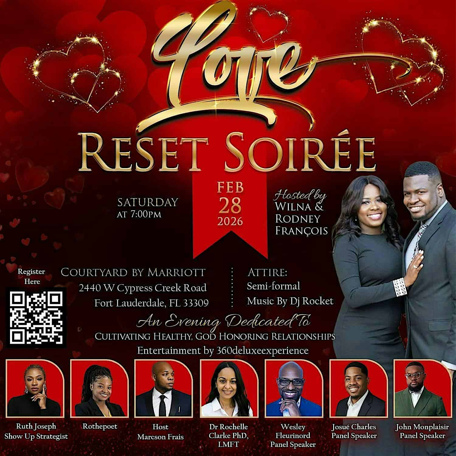 by admin14Feb Love Reset Soiree 26 at Courtyard by Marriott Fort Lauderdale North/Cypress Creek – Fort Lauderdale, FL Love Reset Soiree 26 at Courtyard by Marriott Fort Lauderdale North/Cypress Creek – Fort Lauderdale, FL 2 2 people viewed this event. Come join us for a night of love, connection, and resetting our hearts at the 4th Annual Love Reset Soiree! Tickets-RSVP Link Date And Time Sunday, March 1st, 2026 12:00 AM (PST) Venue Courtyard by Marriott Fort Lauderdale North/Cypress Creek Location 2440 West Cypress Creek Road, Fort Lauderdale, FL 33309 Event Types Film, Media & EntertainmentParty or Social Gathering Event Category FloridaFt Lauderdale Share With Friends Facebook Twitter Linkedin Xing Pinterest Share This Post: