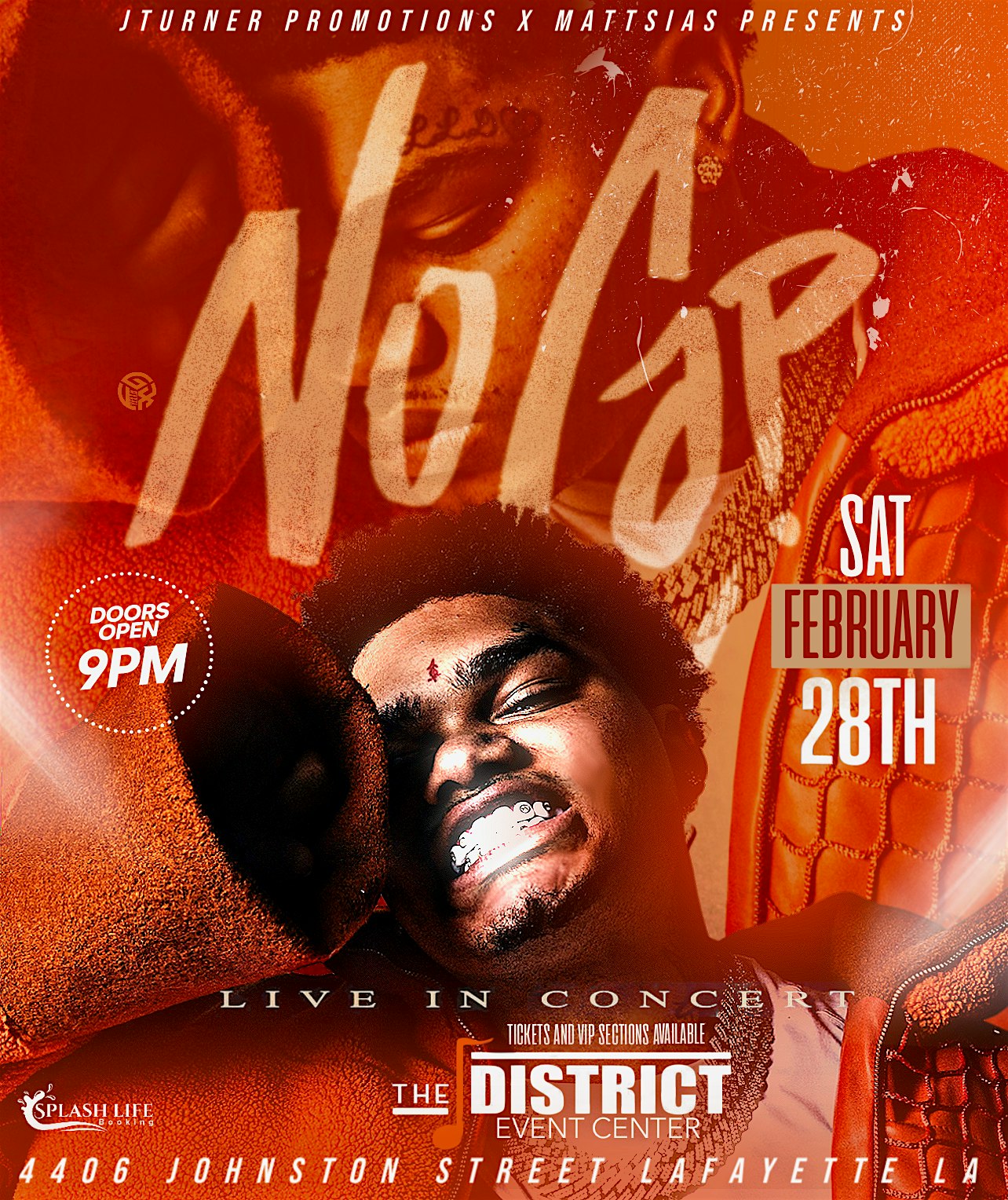 by admin13Feb NO CAP – LIVE IN CONCERT – FEB 28TH at The District Event Center – Lafayette, LA NO CAP – LIVE IN CONCERT – FEB 28TH at The District Event Center – Lafayette, LA 3 3 people viewed this event. NO CAP LIVE IN LAFAYETTE JTURNEr Promotions ❌ Matt Sias present NO CAP — Live in Concert Saturday, February 28th Doors Open: 9 Tickets-RSVP Link Date And Time Sunday, March 1st, 2026 03:00 AM (PST) Venue The District Event Center Location 4607 Johnston Street, Lafayette, LA 70503 Event Types Concert or PerformanceMusic Event Category Louisiana Share With Friends Facebook Twitter Linkedin Xing Pinterest Share This Post: