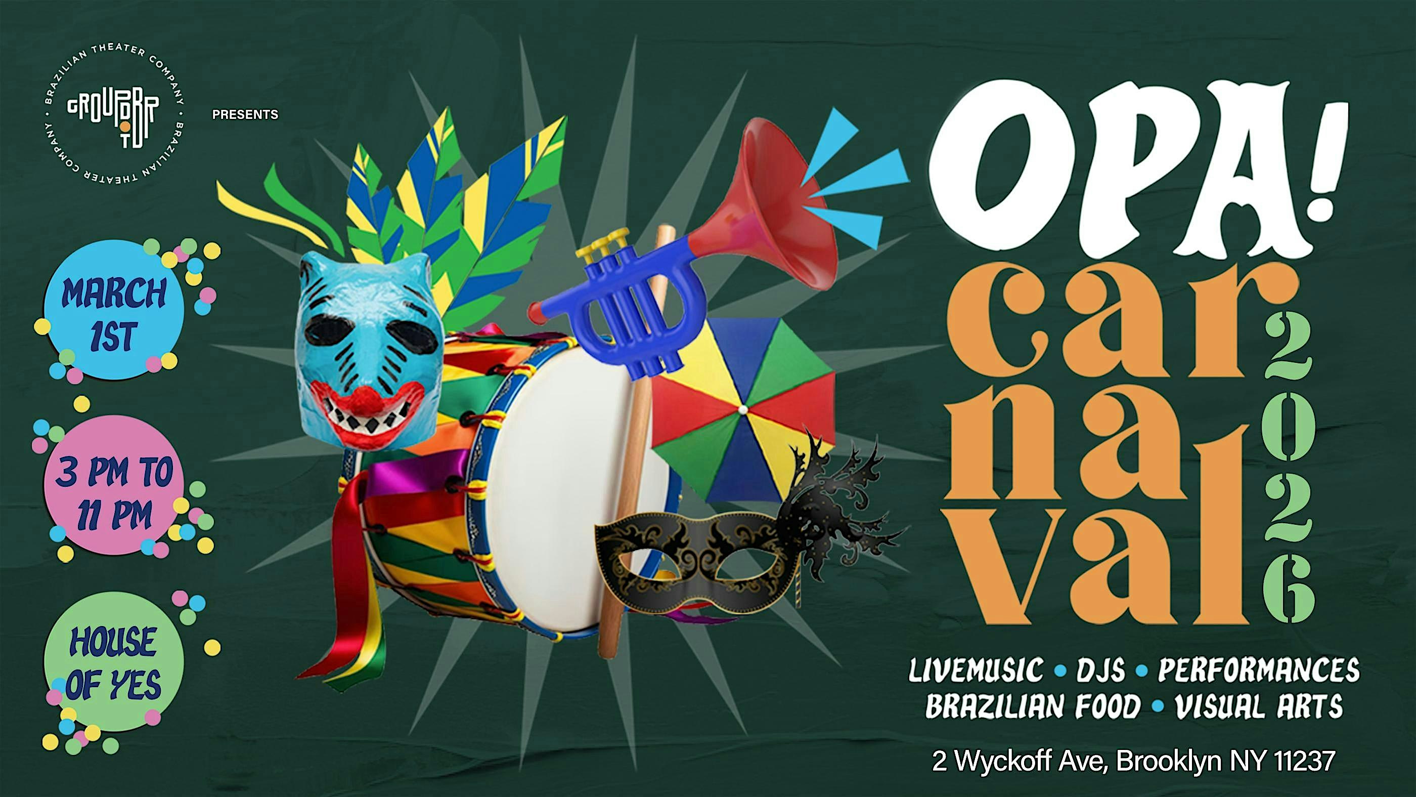 by admin13Feb Opa! Carnaval 2026 at House of Yes – Brooklyn, NY Opa! Carnaval 2026 at House of Yes – Brooklyn, NY 2 2 people viewed this event. House of Yes Presents Opa! Carnaval #PARTY #DANCE @HOY Tickets-RSVP Link Date And Time Sunday, March 1st, 2026 08:00 PM (PST) Venue House of Yes Location 2 Wyckoff Avenue, Brooklyn, NY 11237 Event Types Concert or PerformanceMusic Event Category New York Share With Friends Facebook Twitter Linkedin Xing Pinterest Share This Post: