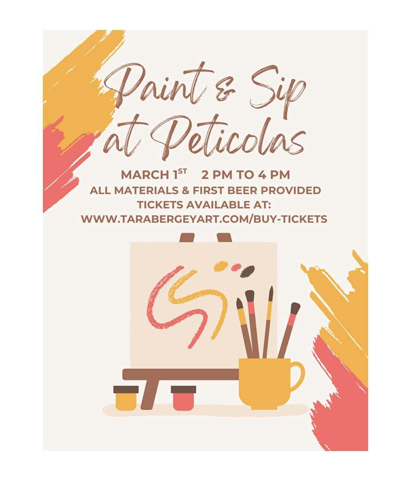 by admin14Feb Paint and Sip at Peticolas Brewing at Peticolas Brewing Company Taproom – Dallas, TX Paint and Sip at Peticolas Brewing at Peticolas Brewing Company Taproom – Dallas, TX 2 2 people viewed this event. Come to Peticolas Brewing for a fun day of painting and sipping on delicious craft beers with friends! Tickets-RSVP Link Date And Time Sunday, March 1st, 2026 08:00 PM (PST) Venue Peticolas Brewing Company Taproom Location 1301 Pace Street, Dallas, TX 75207 Event Types Food & DrinkParty or Social Gathering Event Category DallasTexas Share With Friends Facebook Twitter Linkedin Xing Pinterest Share This Post: