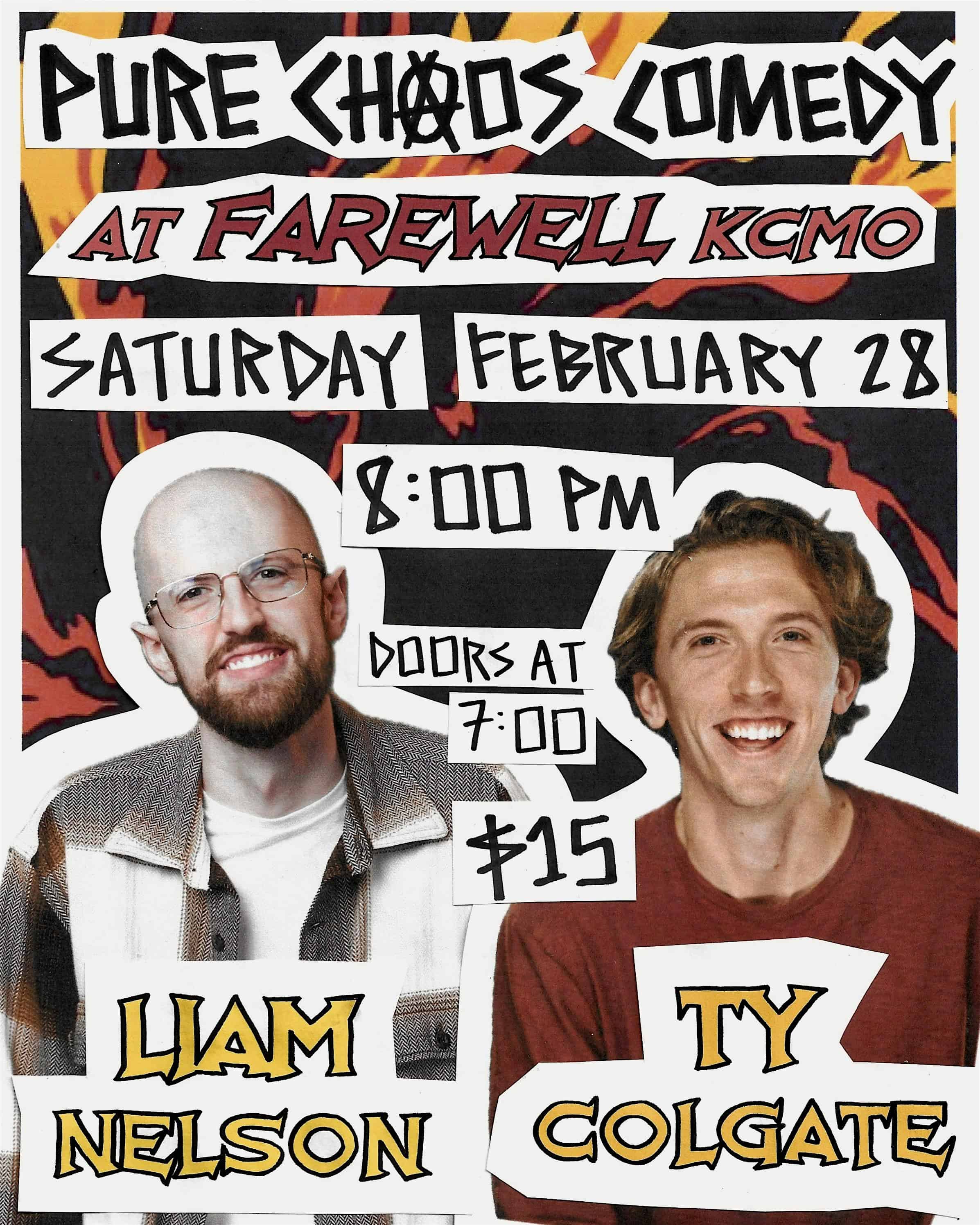 by admin14Feb Pure Chaos Presents: Liam Nelson Live in Kansas City at Farewell – Kansas City, MO Pure Chaos Presents: Liam Nelson Live in Kansas City at Farewell – Kansas City, MO 2 2 people viewed this event. Pure Chaos is thrilled to welcome Liam Nelson and Ty Colgate to Kansas City, Missouri at Farewell! Tickets-RSVP Link Date And Time Sunday, March 1st, 2026 02:00 AM (PST) Venue Farewell Location 6515 Stadium Drive, Kansas City, MO 64129 Event Types Concert or PerformancePerforming & Visual Arts Event Category Kansas CityMissouri Share With Friends Facebook Twitter Linkedin Xing Pinterest Share This Post: