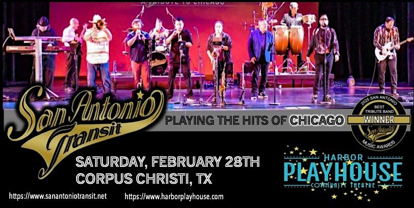 by admin13Feb The Hits Songs of Chicago, with San Antonio Transit at Harbor Playhouse – Corpus Christi, TX The Hits Songs of Chicago, with San Antonio Transit at Harbor Playhouse – Corpus Christi, TX 3 3 people viewed this event. Experience the music of Chicago live! San Antonio Transit brings big horns, iconic hits, and high-energy performance back to Harbor Playhous Tickets-RSVP Link Date And Time Sunday, March 1st, 2026 02:00 AM (PST) Venue Harbor Playhouse Location 1802 North Chaparral Street, Corpus Christi, TX 78401 Event Types Concert or PerformanceMusic Event Category Corpus ChristiTexas Share With Friends Facebook Twitter Linkedin Xing Pinterest Share This Post:
