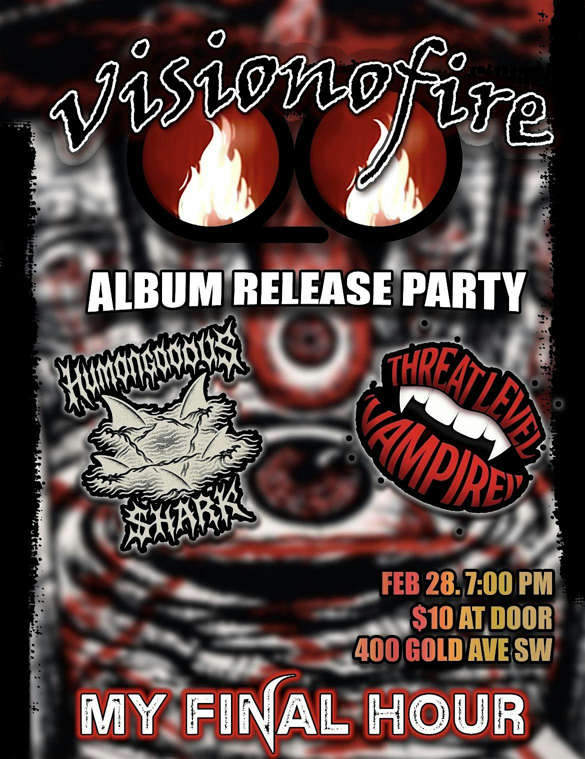 by admin13Feb Vision of Fire Album Release Party at Luna’s Kava Root – Albuquerque, NM Vision of Fire Album Release Party at Luna’s Kava Root – Albuquerque, NM 1 1 people viewed this event. Join us for local prog metal band Vision Of Fire inaugural album release! Tickets-RSVP Link Date And Time Sunday, March 1st, 2026 02:00 AM (PST) Venue Luna's Kava Root Location 400 Gold Avenue Southwest, Albuquerque, NM 87102 Event Types Concert or PerformanceMusic Event Category AlbuquerqueNew Mexico Share With Friends Facebook Twitter Linkedin Xing Pinterest Share This Post: