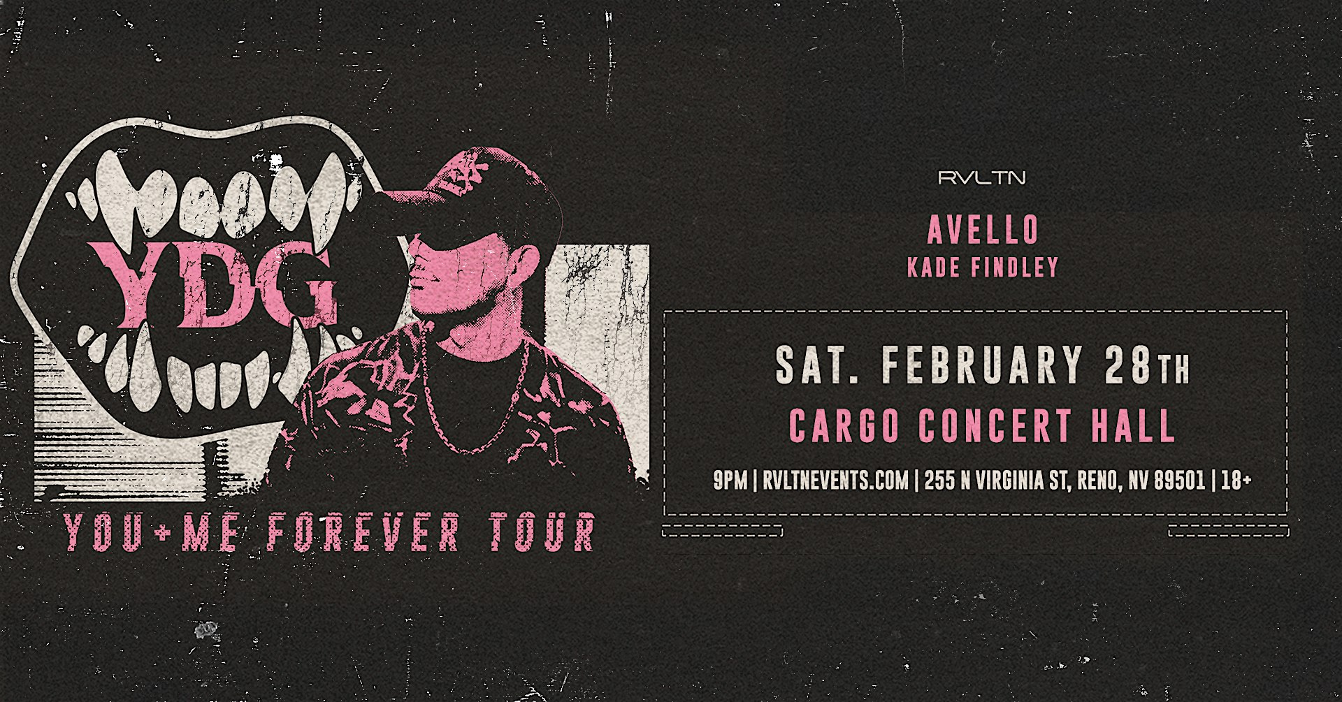 by admin13Feb YDG at Cargo Concert Hall at Cargo : Whitney Peak Hotel – Reno, NV YDG at Cargo Concert Hall at Cargo : Whitney Peak Hotel – Reno, NV 2 2 people viewed this event. RVLTN and Cargo Concert Hall present YDG’s You + Me Forever Tour! Tickets-RSVP Link Date And Time Sunday, March 1st, 2026 05:00 AM (PST) Venue Cargo : Whitney Peak Hotel Location 255 North Virginia Street, Reno, NV 89501 Event Types Concert or PerformanceMusic Event Category NevadaReno Share With Friends Facebook Twitter Linkedin Xing Pinterest Share This Post: