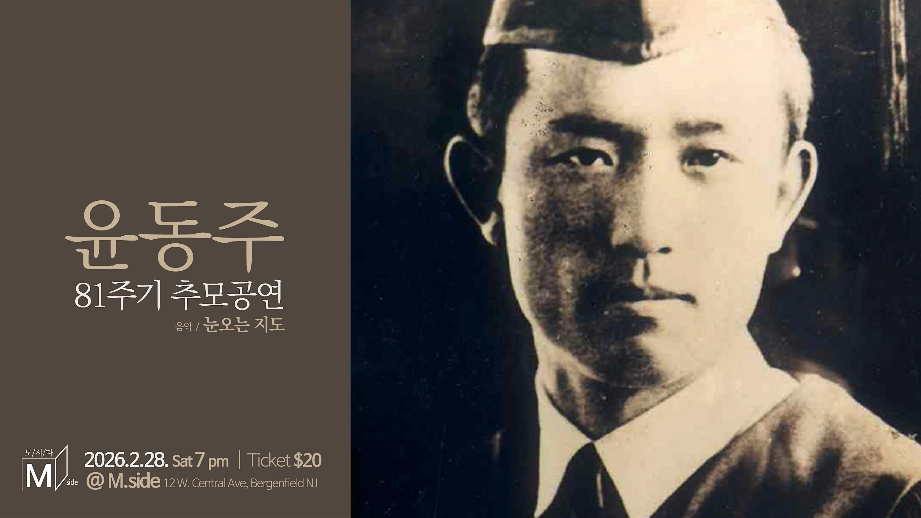 by admin13Feb YOON DONGJU 81st Memorial Concert at M.side – Bergenfield, NJ YOON DONGJU 81st Memorial Concert at M.side – Bergenfield, NJ 1 1 people viewed this event. 윤동주 81주기 추모공연 / 음악 눈오는 지도 Tickets-RSVP Link Date And Time Sunday, March 1st, 2026 12:00 AM (PST) Venue M.side Location 12 West Central Avenue, Bergenfield, NJ 7621 Event Types Concert or PerformanceMusic Event Category New Jersey Share With Friends Facebook Twitter Linkedin Xing Pinterest Share This Post: