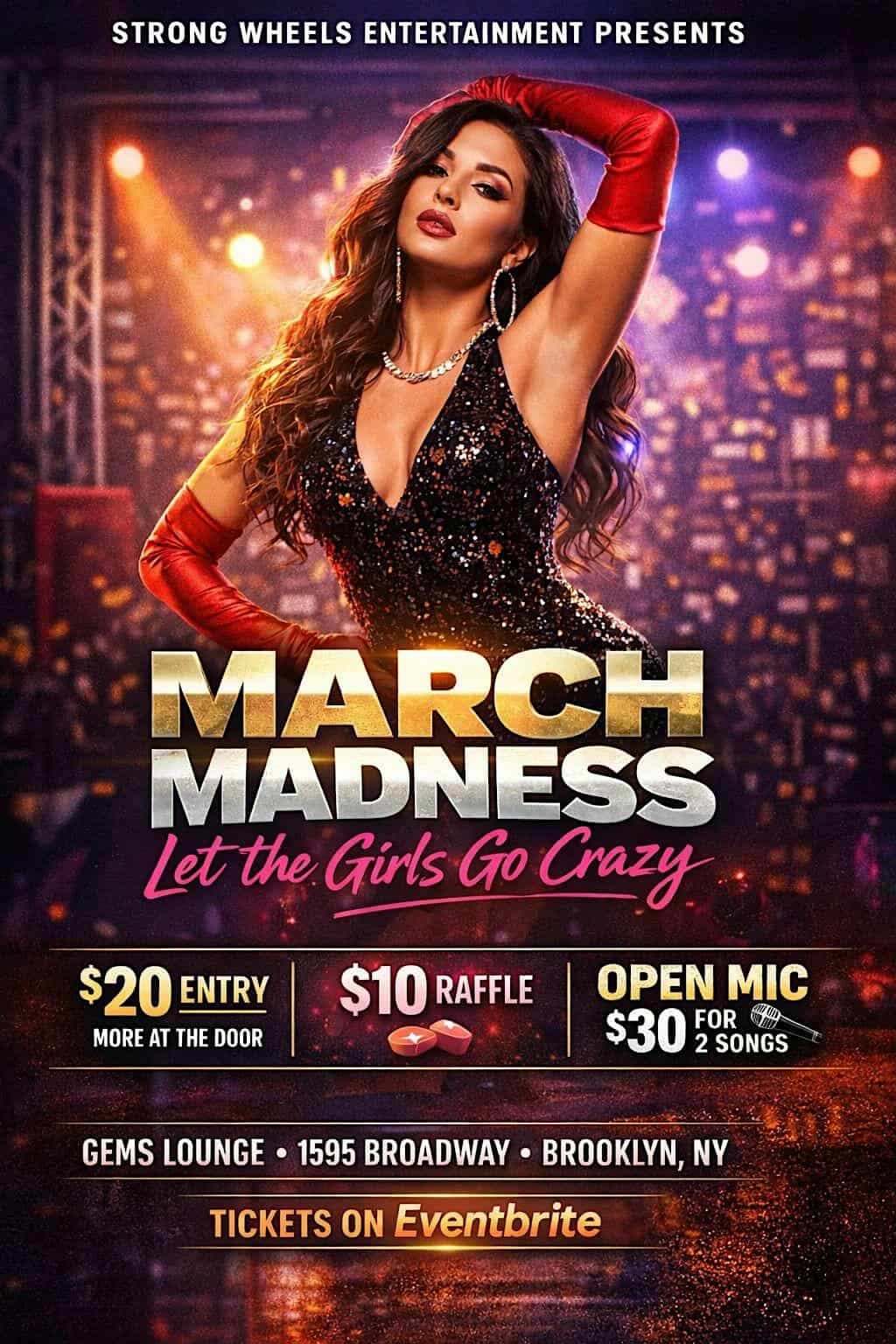 by admin14Feb March madness-Let the girls go crazy at Gems Bar & Lounge – Brooklyn, NY March madness-Let the girls go crazy at Gems Bar & Lounge – Brooklyn, NY 1 1 people viewed this event. Best night party on a Sunday. Open mic slots,live dancers and great bartenders.great raffle giveaway. Tickets-RSVP Link Date And Time Monday, March 2nd, 2026 03:00 AM (PST) Venue Gems Bar & Lounge Location 1595 Broadway, Brooklyn, NY 11207 Event Types Film, Media & EntertainmentParty or Social Gathering Event Category New York Share With Friends Facebook Twitter Linkedin Xing Pinterest Share This Post:
