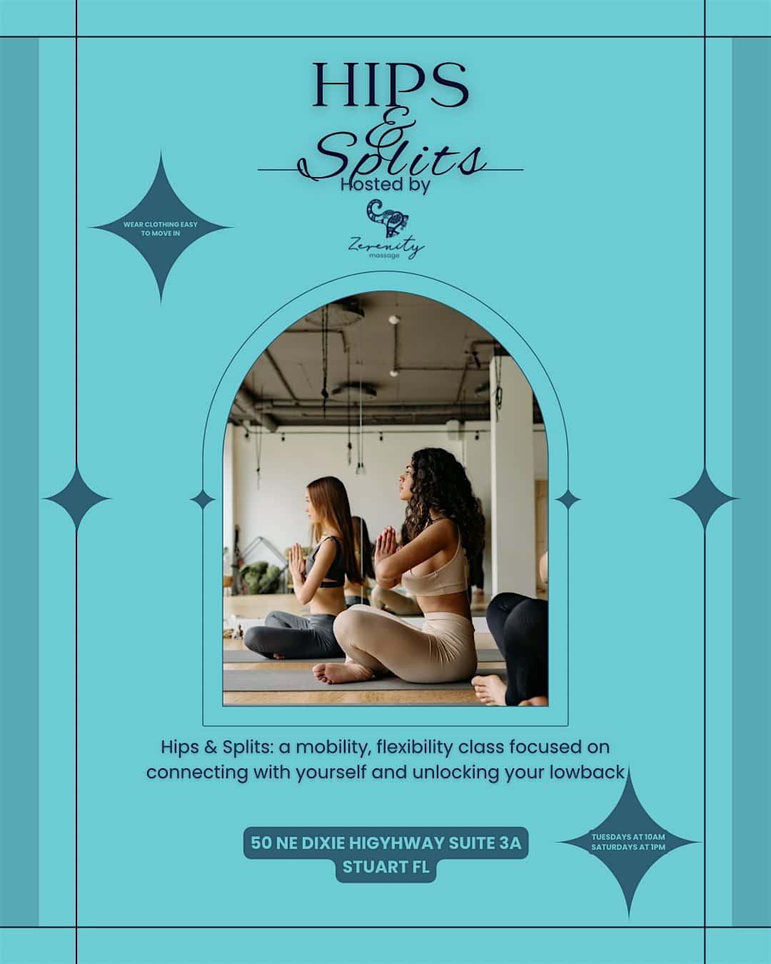 by admin14Feb Hips and Splits at Mood Alternative Fitness & Pole Dance – Stuart, FL Hips and Splits at Mood Alternative Fitness & Pole Dance – Stuart, FL 2 2 people viewed this event. Hips & Splits: a mobility, flexibility class focused on connecting with yourself and unlocking your lowback Tickets-RSVP Link Date And Time Tuesday, March 3rd, 2026 03:00 PM (PST) Venue Mood Alternative Fitness & Pole Dance Location 50 Northeast Dixie Highway, Stuart, FL 34994 Event Types Concert or PerformanceSports & Fitness Event Category Florida Share With Friends Facebook Twitter Linkedin Xing Pinterest Share This Post:
