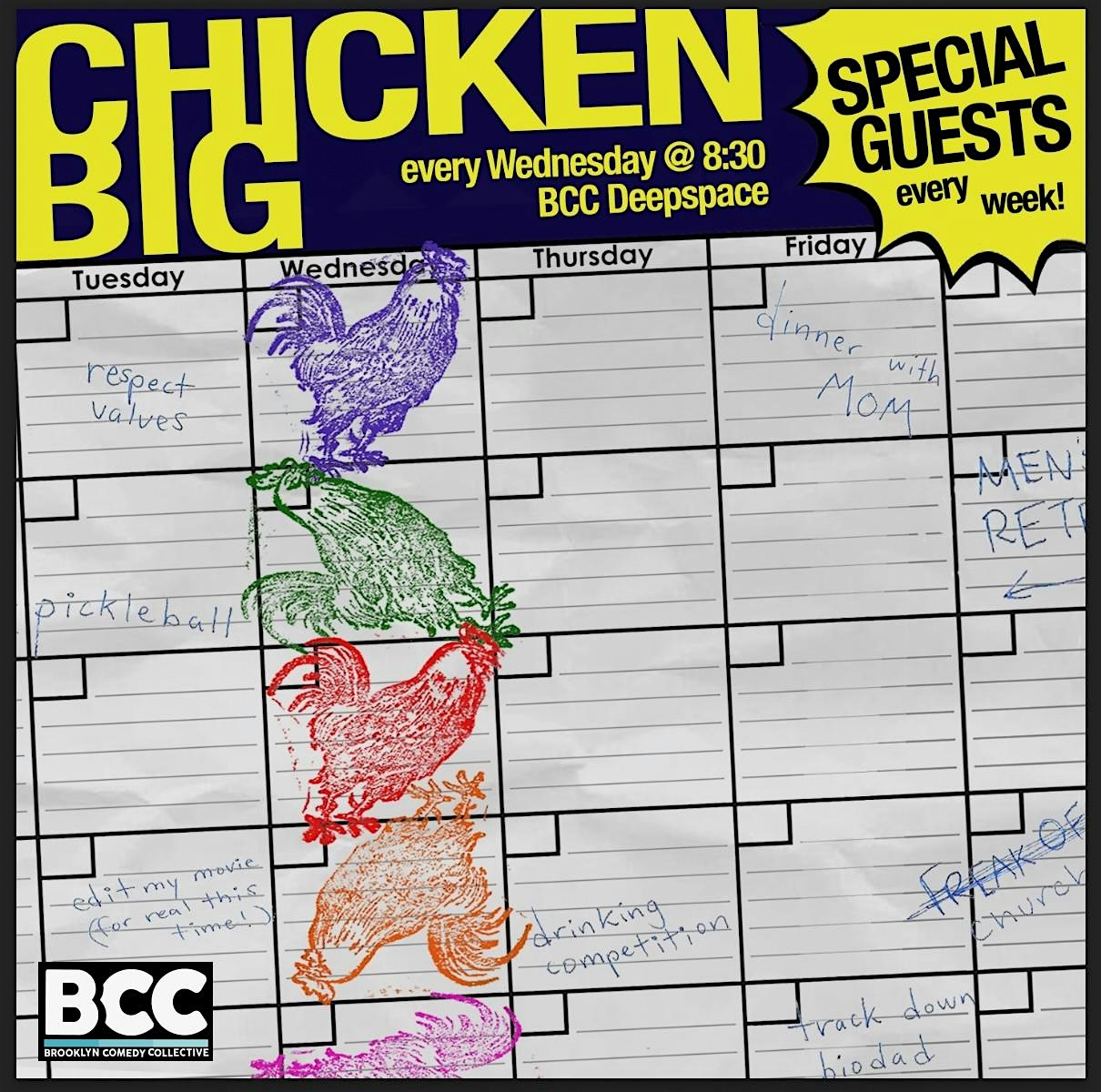 by admin27Feb Chicken Big at Brooklyn Comedy Collective (BCC) @ Eris – Brooklyn, NY Chicken Big at Brooklyn Comedy Collective (BCC) @ Eris – Brooklyn, NY 2 2 people viewed this event. Chicken Big Goes Weekly at the BCC! Tickets-RSVP Link Date And Time Wednesday, March 4th, 2026 08:00 PM (PST) Venue Brooklyn Comedy Collective (BCC) @ Eris Location 167 Graham Avenue, Brooklyn, NY 11206 Event Types Festival or FairFood & Drink Event Category New York Share With Friends Facebook Twitter Linkedin Xing Pinterest Share This Post: