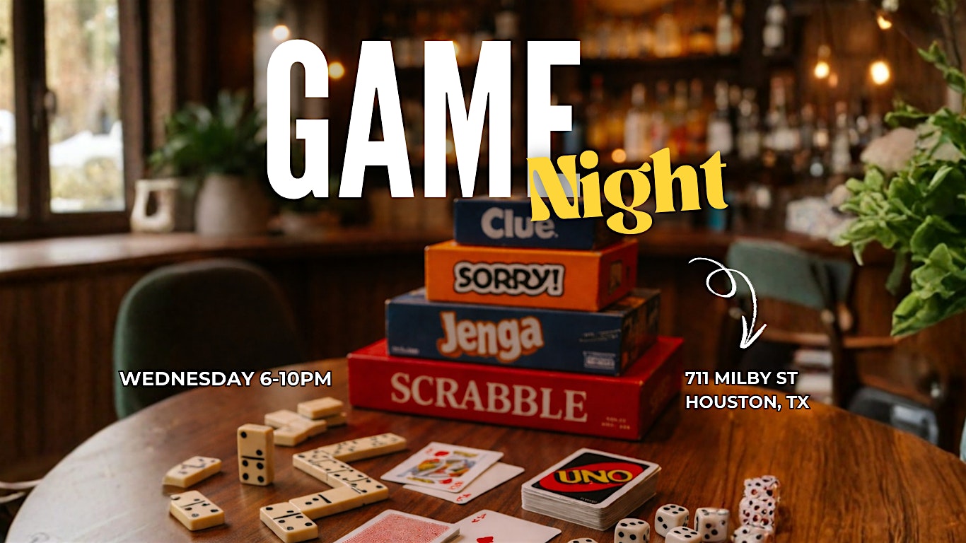 by admin27Feb Game Night Wednesdays at The Mood Room Garden and Bar – Houston, TX Game Night Wednesdays at The Mood Room Garden and Bar – Houston, TX 2 2 people viewed this event. Game on, good times guaranteed. Every Wednesday. Tickets-RSVP Link Date And Time Wednesday, March 4th, 2026 06:00 PM (PST) Venue The Mood Room Garden and Bar Location 711 Milby Street, Houston, TX 77023 Event Types Party or Social Gathering Event Category HoustonTexas Share With Friends Facebook Twitter Linkedin Xing Pinterest Share This Post: