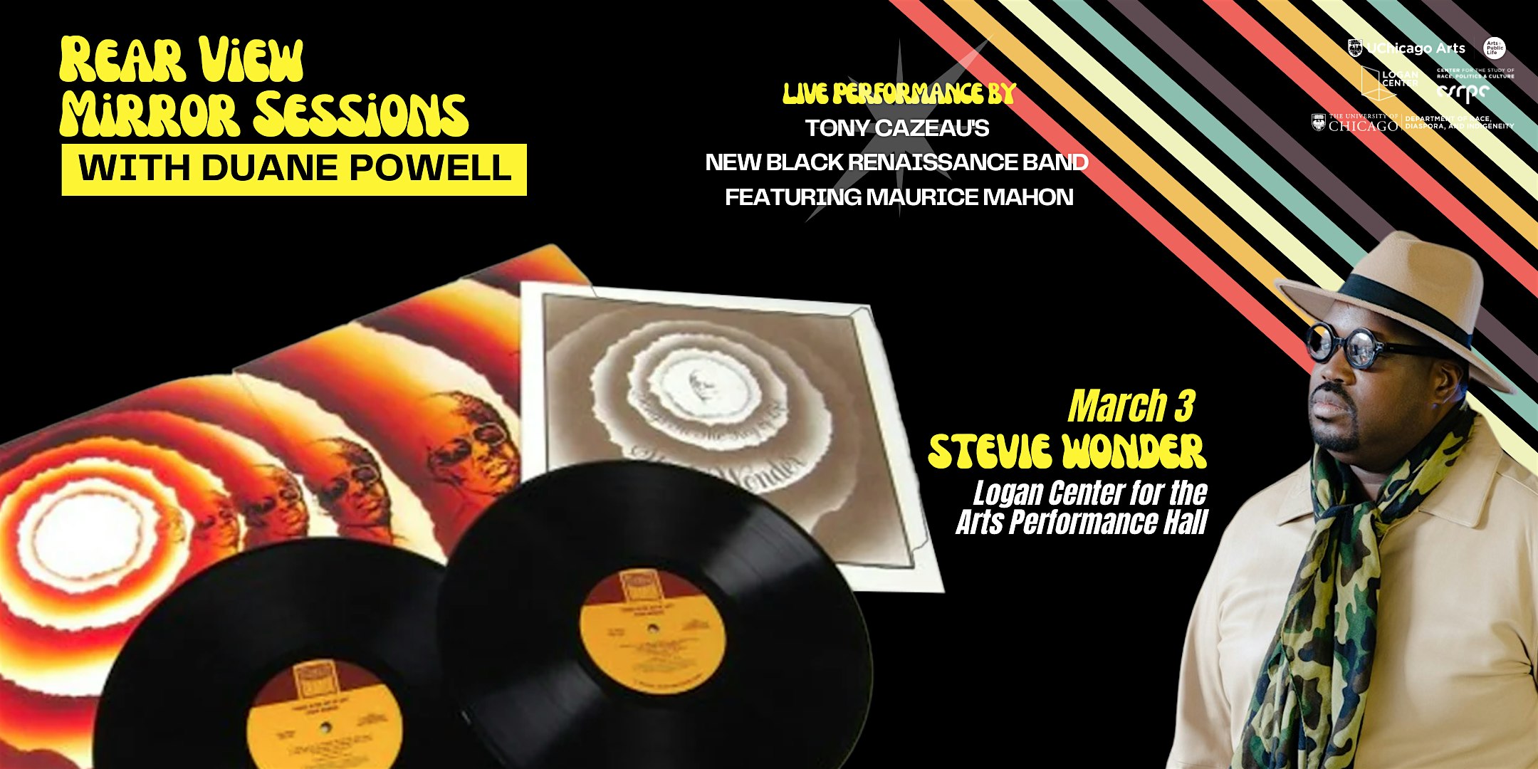 by admin13Feb Rear View Mirror Sessions: Stevie Wonder at Reva and David Logan Center for the Arts – Chicago, IL Rear View Mirror Sessions: Stevie Wonder at Reva and David Logan Center for the Arts – Chicago, IL 2 2 people viewed this event. RVMS continues with a celebration of Stevie Wonder Tickets-RSVP Link Date And Time Wednesday, March 4th, 2026 12:00 AM (PST) Venue Reva and David Logan Center for the Arts Location 915 East 60th Street, Chicago, IL 60637 Event Types Concert or PerformanceMusic Event Category ChicagoIllinois Share With Friends Facebook Twitter Linkedin Xing Pinterest Share This Post: