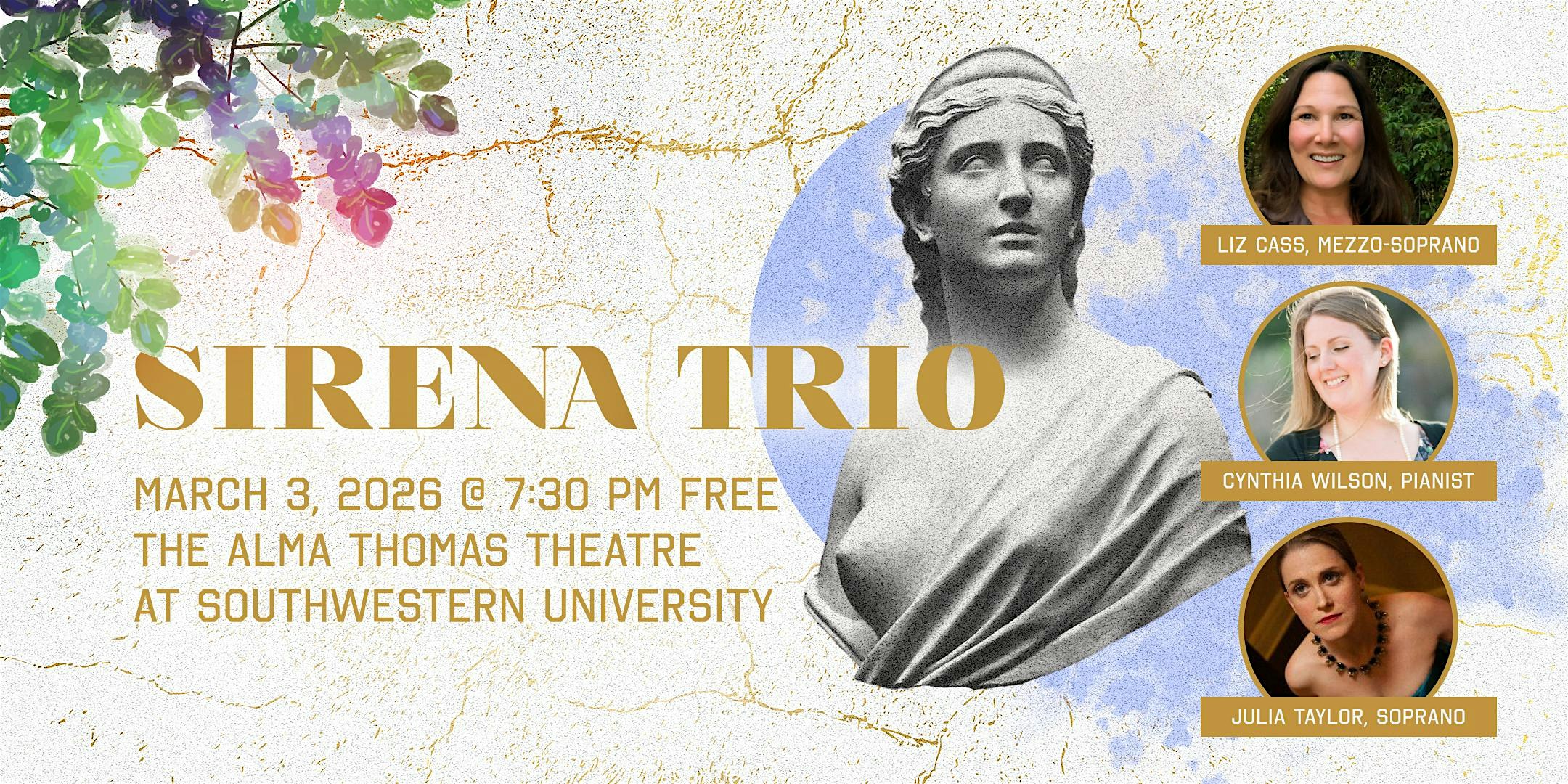 by admin13Feb Sirena Trio in Concert at Alma Thomas Fine Arts Center – Georgetown, TX Sirena Trio in Concert at Alma Thomas Fine Arts Center – Georgetown, TX 1 1 people viewed this event. Join Sirena Trio in Concert for an unforgettable night of soulful melodies and vibrant vibes! Tickets-RSVP Link Date And Time Wednesday, March 4th, 2026 01:00 AM (PST) Venue Alma Thomas Fine Arts Center Location 1001 East University Avenue, Georgetown, TX 78626 Event Types Concert or PerformanceMusic Event Category Texas Share With Friends Facebook Twitter Linkedin Xing Pinterest Share This Post: