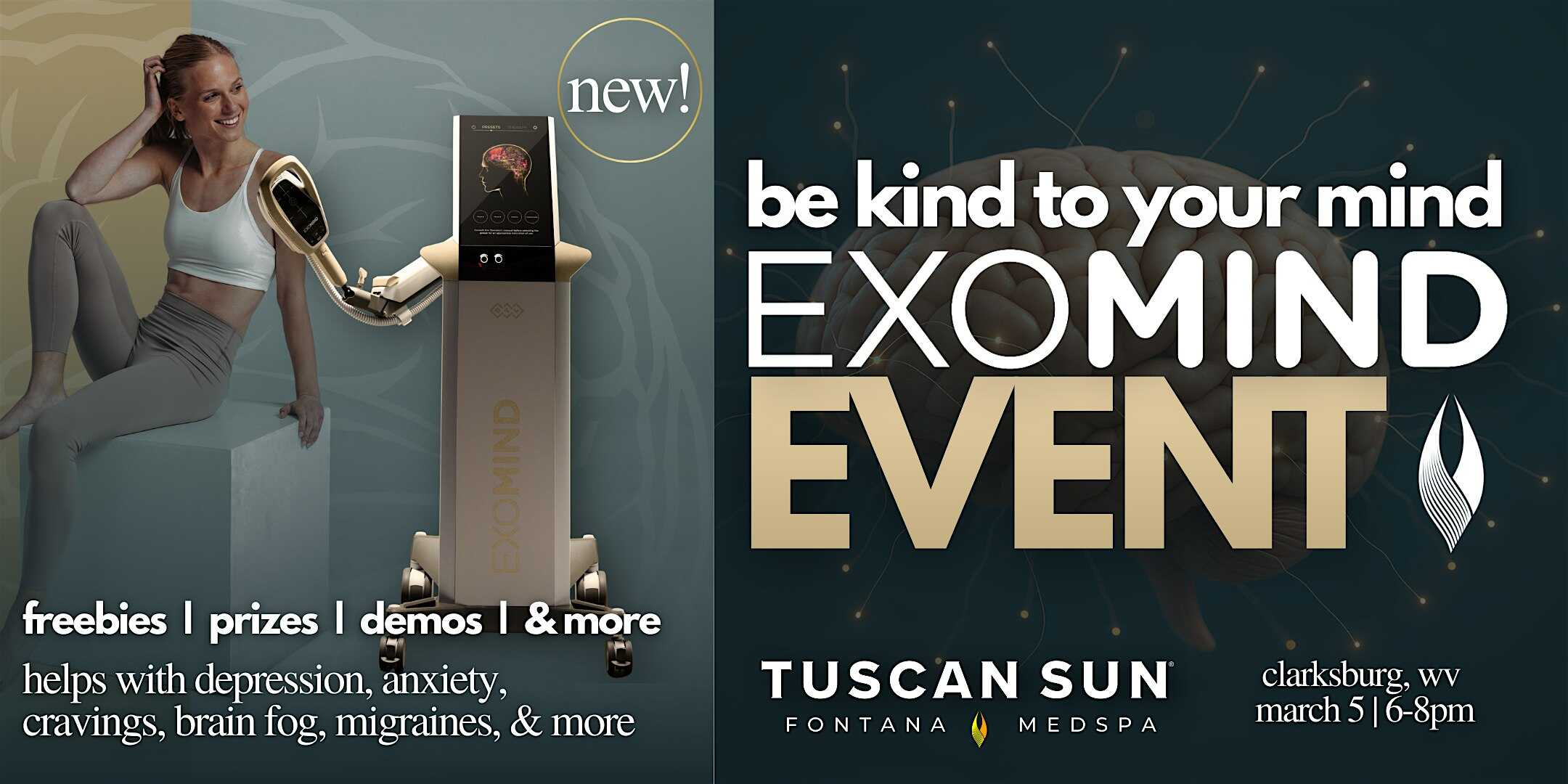 by admin23Feb Be Kind To Your Mind: Exomind Event | Clarksburg, WV | 6-8pm at Tuscan Sun Spa & Salon – Clarksburg, WV Be Kind To Your Mind: Exomind Event | Clarksburg, WV | 6-8pm at Tuscan Sun Spa & Salon – Clarksburg, WV 1 1 people viewed this event. It’s time to show your brain some love with our official launch of Exomind! Tickets-RSVP Link Date And Time Thursday, March 5th, 2026 @ 06:00 PM Location 482 Emily Drive, Clarksburg, WV 26301 Event Types Party or Social Gathering Event Category West Virginia Share With Friends Facebook Twitter Linkedin Xing Pinterest Share This Post: