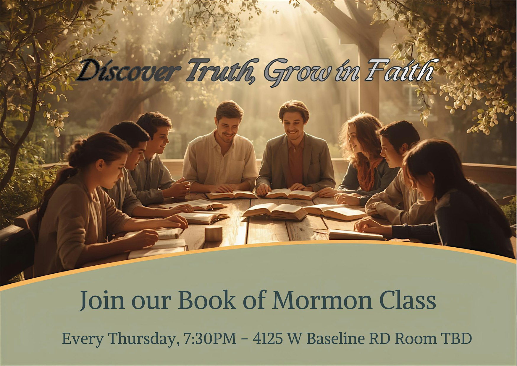 by admin27Feb Book of Mormon Scripture Study Group at The Church of Jesus Christ of Latter-day Saints – Phoenix, AZ Book of Mormon Scripture Study Group at The Church of Jesus Christ of Latter-day Saints – Phoenix, AZ 2 2 people viewed this event. Tickets-RSVP Link Date And Time Thursday, March 5th, 2026 07:00 PM (PST) Venue The Church of Jesus Christ of Latter-day Saints Location 4125 West Baseline Road, Phoenix, AZ 85339 Event Types Music Event Category ArizonaPhoenix Share With Friends Facebook Twitter Linkedin Xing Pinterest Share This Post: