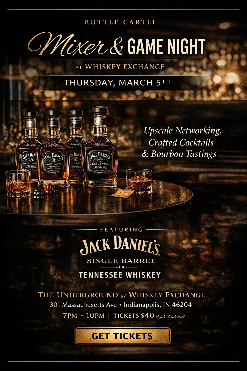 by admin23Feb Bottle Cartel Mixer & Game Night at The Exchange Bar – Indianapolis, IN Bottle Cartel Mixer & Game Night at The Exchange Bar – Indianapolis, IN 2 2 people viewed this event. Get ready to mix, mingle, and show off your game skills at the Bottle Cartel Mixer & Game Night – it’s going to be a blast! Tickets-RSVP Link Date And Time Thursday, March 5th, 2026 @ 07:00 PM Location 301 Massachusetts Avenue, Indianapolis, IN 46204 Event Types Food & DrinkParty or Social Gathering Event Category IndianaIndianapolis Share With Friends Facebook Twitter Linkedin Xing Pinterest Share This Post: