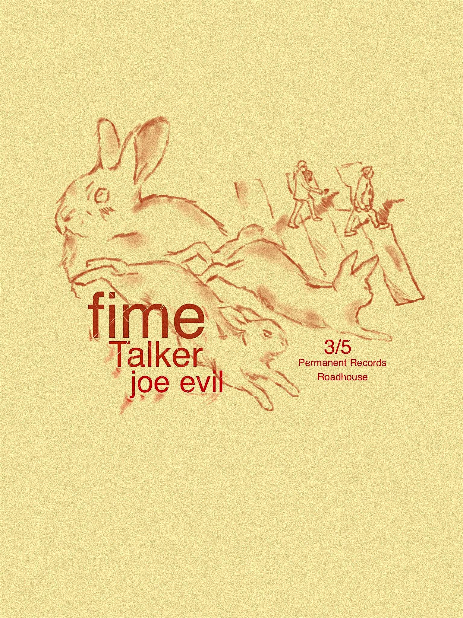 by admin23Feb fime, Talker, joe evil at Permanent Records Roadhouse – Los Angeles, CA fime, Talker, joe evil at Permanent Records Roadhouse – Los Angeles, CA 3 3 people viewed this event. This event is 21+ only. We will check IDs at the door. There are no refunds if you are turned away. Tickets-RSVP Link Date And Time Thursday, March 5th, 2026 09:00 PM (PST) Venue Permanent Records Roadhouse Location 1906 Cypress Avenue, Los Angeles, CA 90065 Event Types Concert or PerformanceMusic Event Category CaliforniaLos Angeles Share With Friends Facebook Twitter Linkedin Xing Pinterest Share This Post:
