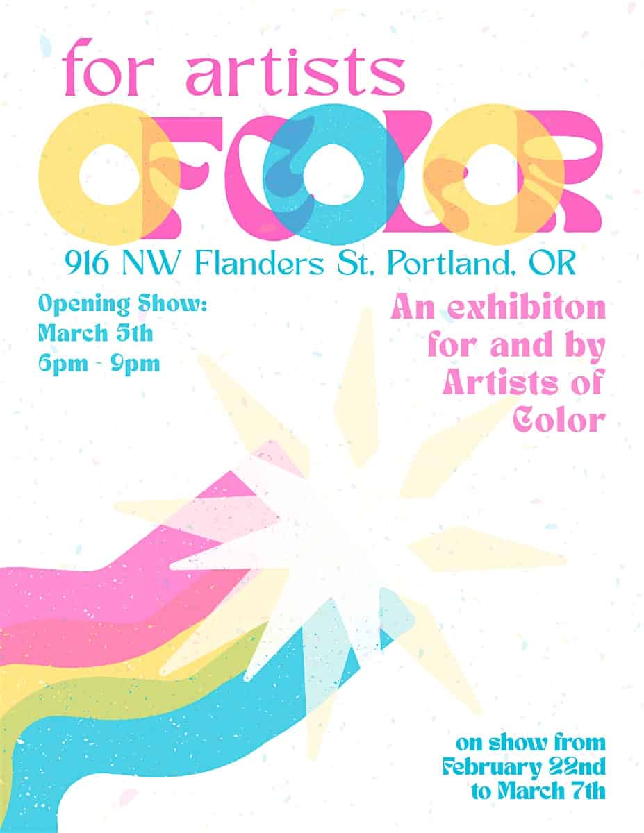 by admin23Feb For Artists of Color: Opening Reception at The BLACK Gallery at The Black Gallery PDX – Portland, OR For Artists of Color: Opening Reception at The BLACK Gallery at The Black Gallery PDX – Portland, OR 1 1 people viewed this event. This exhibit is curated by and for Portland-based students of color in response to local institutional censorship. Tickets-RSVP Link Date And Time Thursday, March 5th, 2026 @ 06:00 PM Location 916 Northwest Flanders Street, Portland, OR 97209 Event Types Community & CultureParty or Social Gathering Event Category OregonPortland Share With Friends Facebook Twitter Linkedin Xing Pinterest Share This Post: