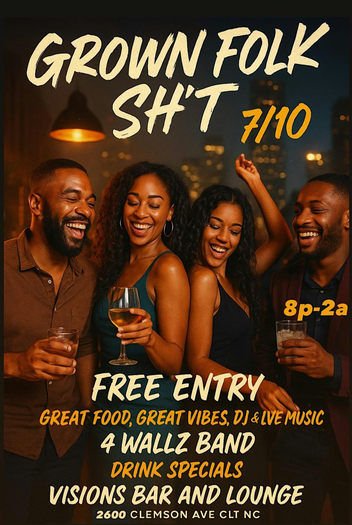 by admin23Feb Grown Folk Sh%t at 2600 Clemson Ave – Charlotte, NC Grown Folk Sh%t at 2600 Clemson Ave – Charlotte, NC 1 1 people viewed this event. Live Band at 10PM – smooth sounds, real musicianship DJ on deck at 8PM – spinning R&B, Soul, Neo-Soul, and timeless grooves Tickets-RSVP Link Date And Time Thursday, March 5th, 2026 @ 07:00 PM Location 2600 Clemson Avenue, Charlotte, NC 28205 Event Types Community & CultureParty or Social Gathering Event Category CharlotteNorth Carolina Share With Friends Facebook Twitter Linkedin Xing Pinterest Share This Post:
