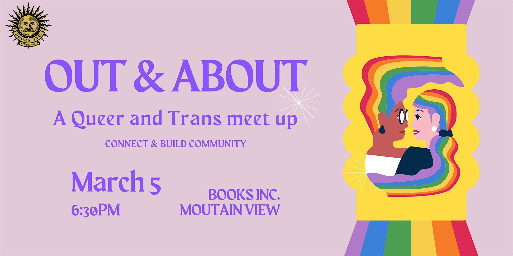 by admin27Feb OUT & ABOUT at Books Inc. Mountain View at Books Inc. – Mountain View, CA OUT & ABOUT at Books Inc. Mountain View at Books Inc. – Mountain View, CA 1 1 people viewed this event. Join us at Books Inc. Mountain View for a queer and trans meet up to gather, make some friends, and build community and resilience. Tickets-RSVP Link Date And Time Thursday, March 5th, 2026 06:00 PM (PST) Venue Books Inc. Location 317 Castro Street, Mountain View, CA 94041 Event Types Community & CultureParty or Social Gathering Event Category CaliforniaSan Jose Share With Friends Facebook Twitter Linkedin Xing Pinterest Share This Post: