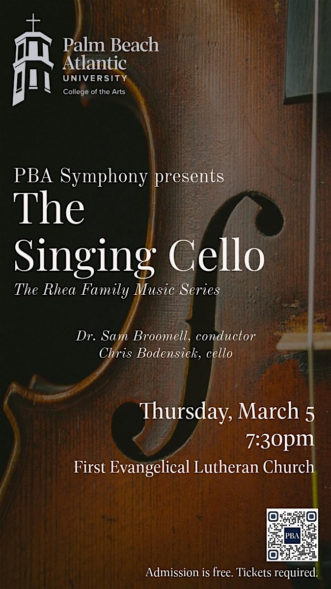 by admin27Feb The Singing Cello at First Evangelical Lutheran Church – West Palm Beach, FL The Singing Cello at First Evangelical Lutheran Church – West Palm Beach, FL 2 2 people viewed this event. The PBA Symphony showcases rising student soloist Chris Bodensiek in Schumann’s beloved Cello Concerto Tickets-RSVP Link Date And Time Thursday, March 5th, 2026 07:00 PM (PST) Venue First Evangelical Lutheran Church Location 2740 Parker Avenue, West Palm Beach, FL 33405 Event Types Concert or PerformanceMusic Event Category Florida Share With Friends Facebook Twitter Linkedin Xing Pinterest Share This Post: