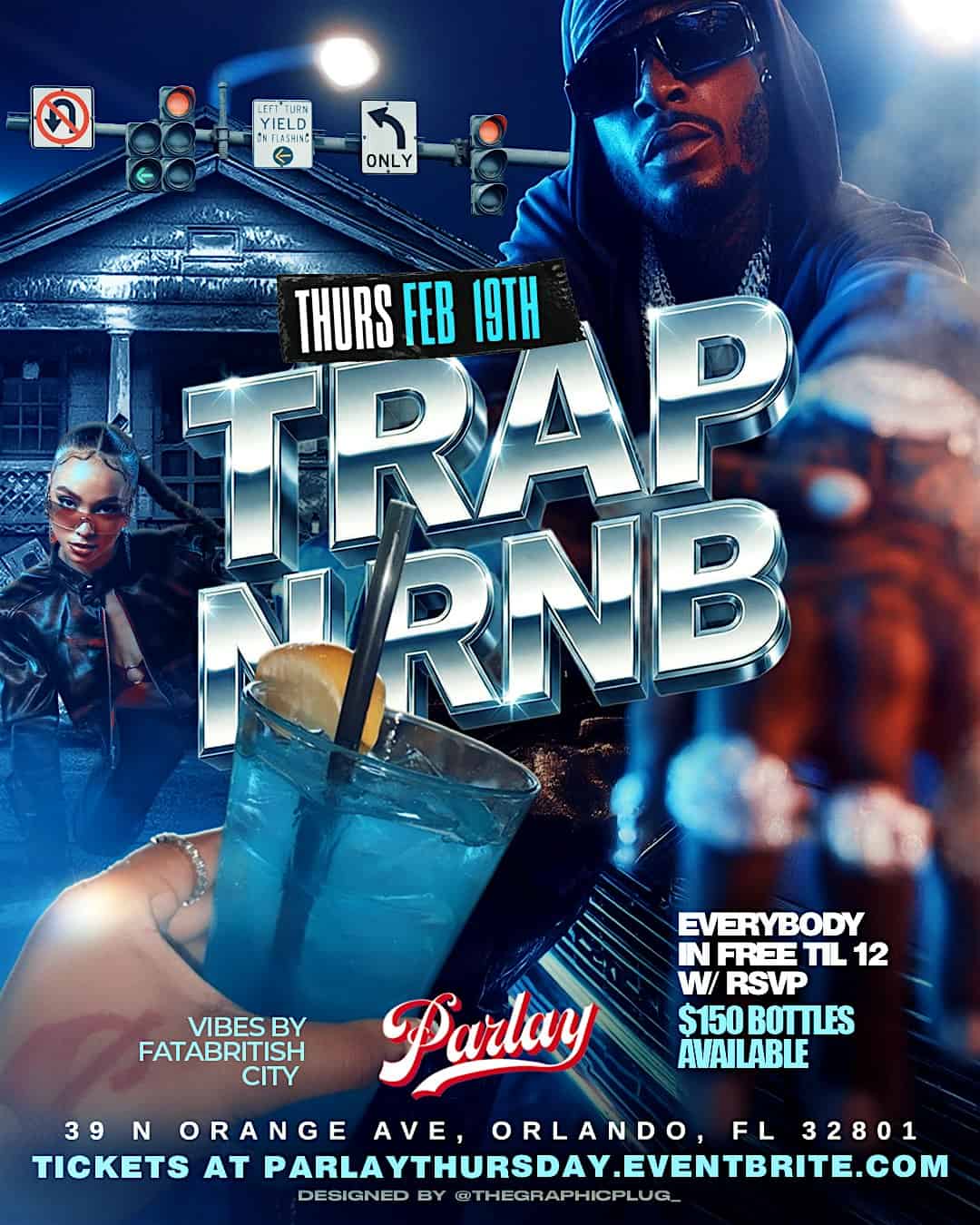 by admin23Feb Trap Soul and Rnb at Parlay Orlando – Orlando, FL Trap Soul and Rnb at Parlay Orlando – Orlando, FL 2 2 people viewed this event. $150 bottles available text 321.947.0466 for section info Tickets-RSVP Link Date And Time Thursday, March 5th, 2026 10:00 PM (PST) Venue Parlay Orlando Location 39 North Orange Avenue, Orlando, FL 32801 Event Types MusicParty or Social Gathering Event Category FloridaOrlando Share With Friends Facebook Twitter Linkedin Xing Pinterest Share This Post: