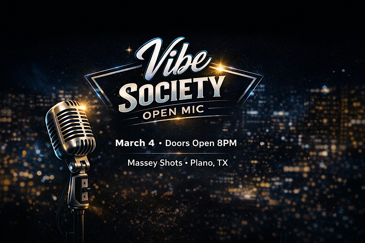 by admin13Feb Vibe Society Open Mic at 8908 Ohio Dr #104 – Plano, TX Vibe Society Open Mic at 8908 Ohio Dr #104 – Plano, TX 1 1 people viewed this event. Vibe Society is an open mic experience where melodies, bars, spoken word, and real energy share the same stage. Tickets-RSVP Link Date And Time Thursday, March 5th, 2026 02:00 AM (PST) Venue 8908 Ohio Dr #104 Location 8908 Ohio Drive, Plano, TX 75024 Event Types Concert or PerformanceMusic Event Category DallasTexas Share With Friends Facebook Twitter Linkedin Xing Pinterest Share This Post: